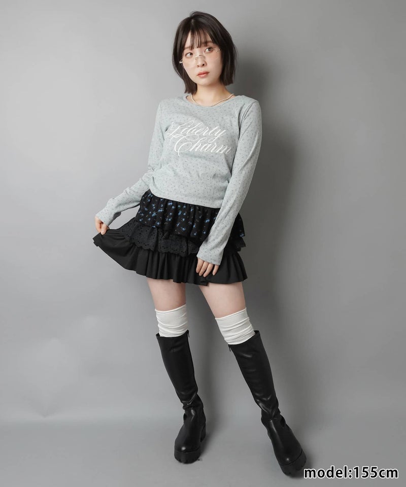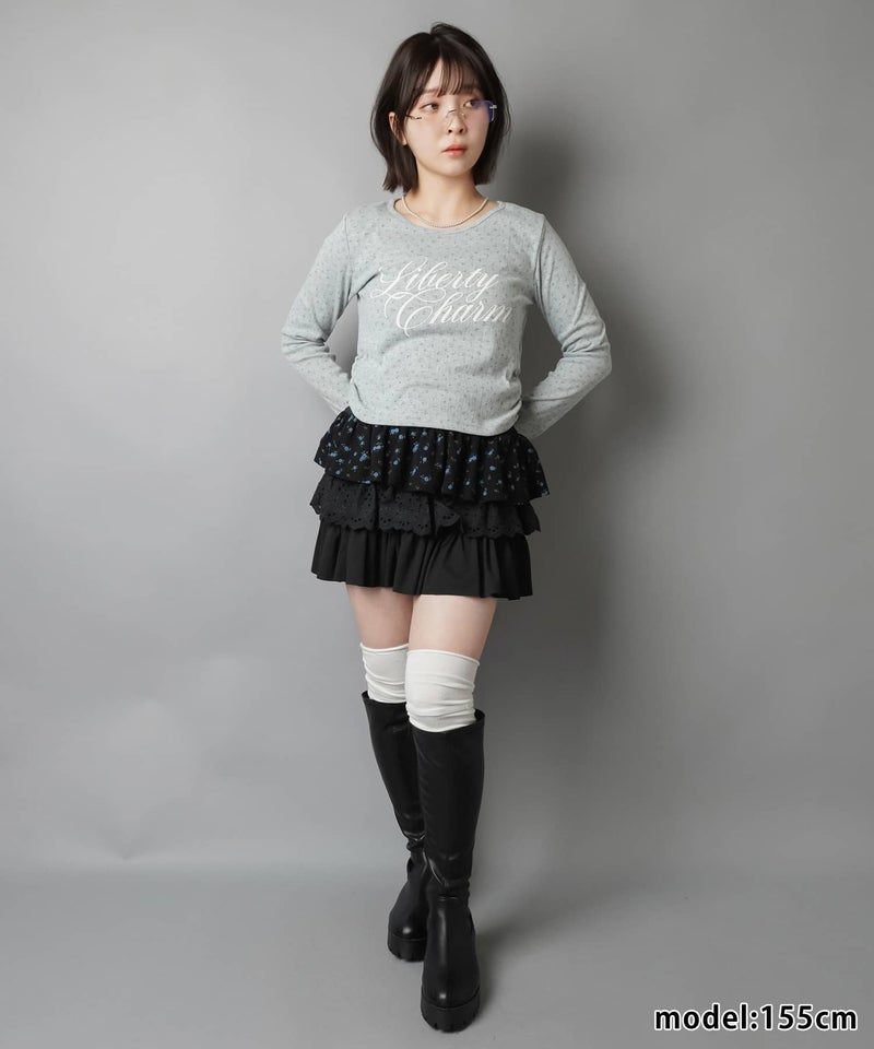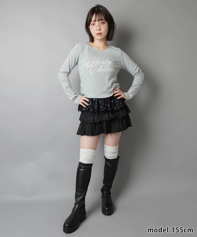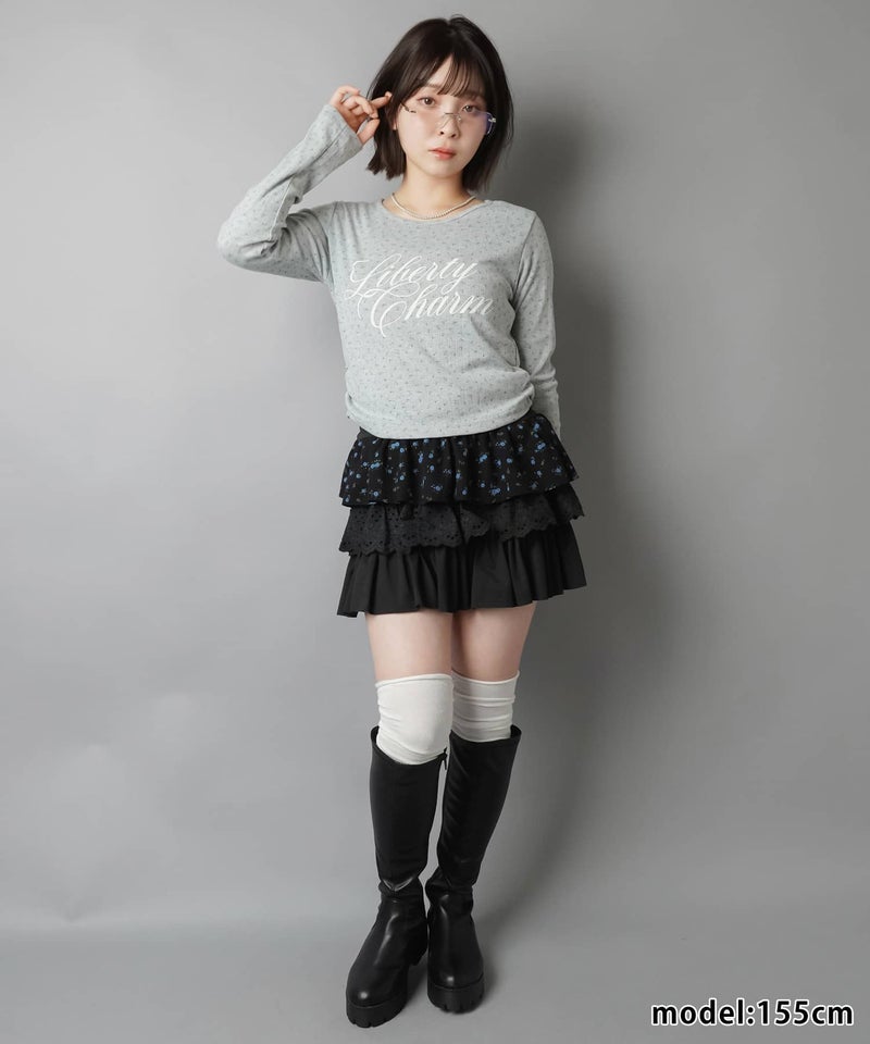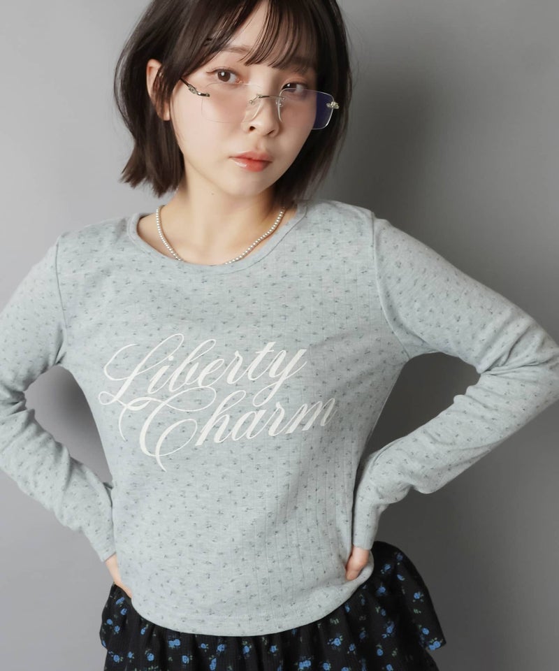 小花柄とロゴデザインが目を惹く、韓国ガーリーな長袖トップス。