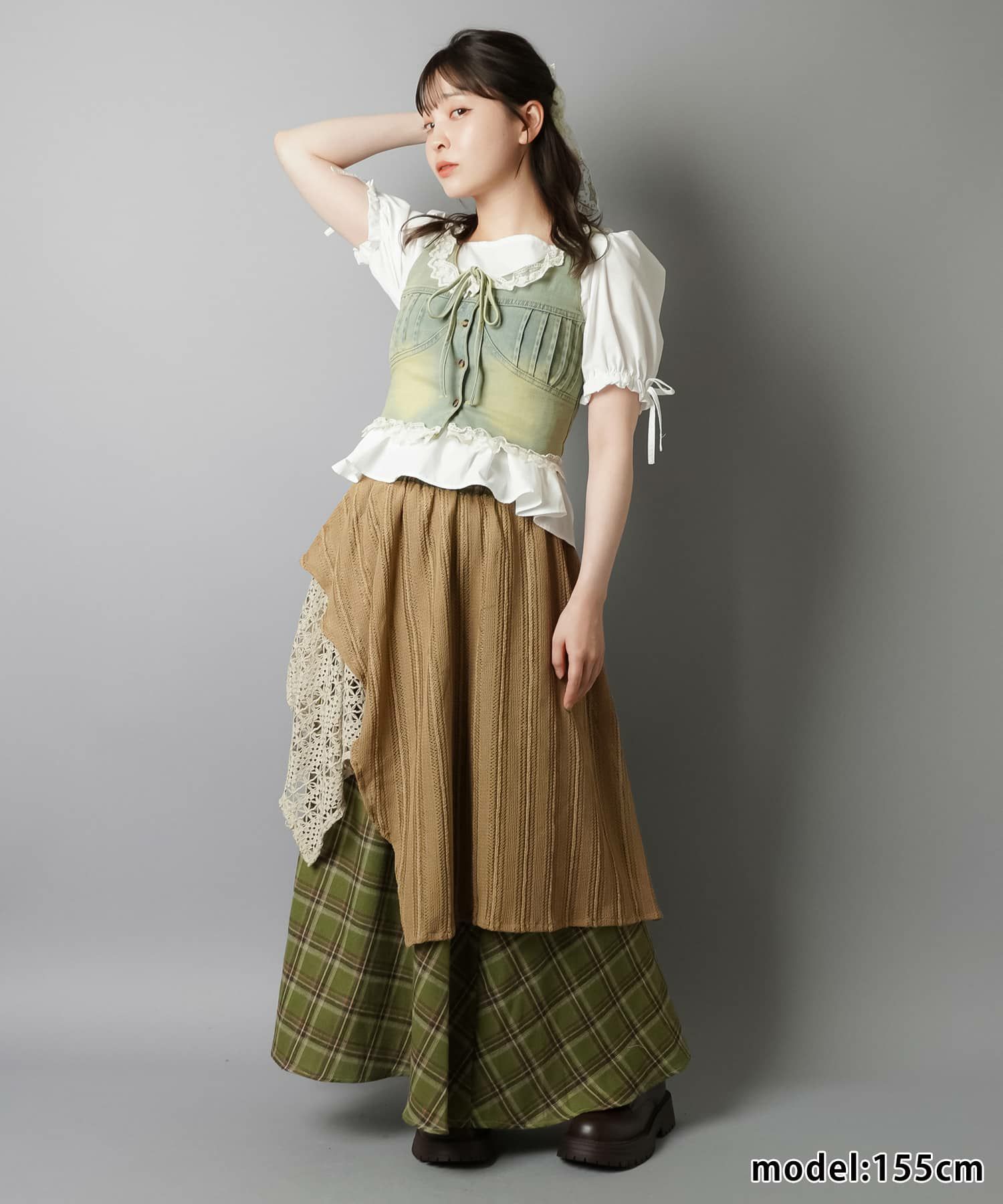 【レイヤード、アースカラー、ダスティカラー、カーディガン、ヘッドアクセ、ナチュラル、レース、ファー】