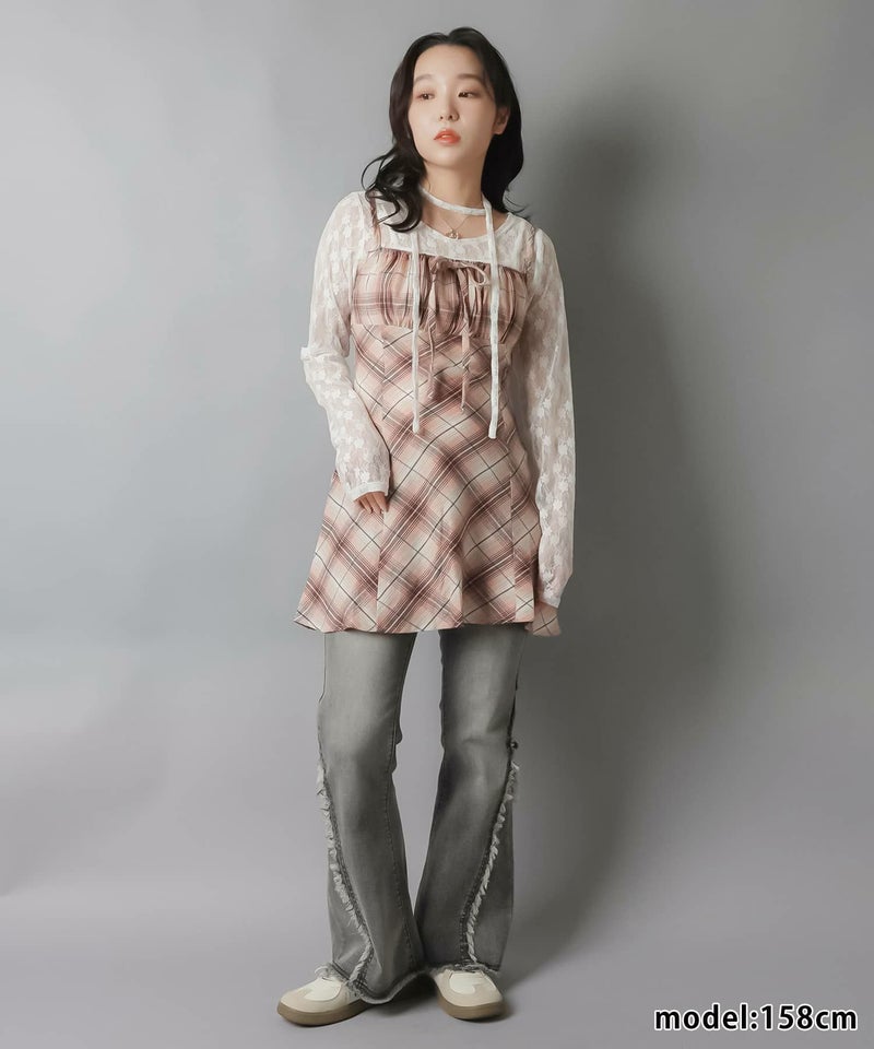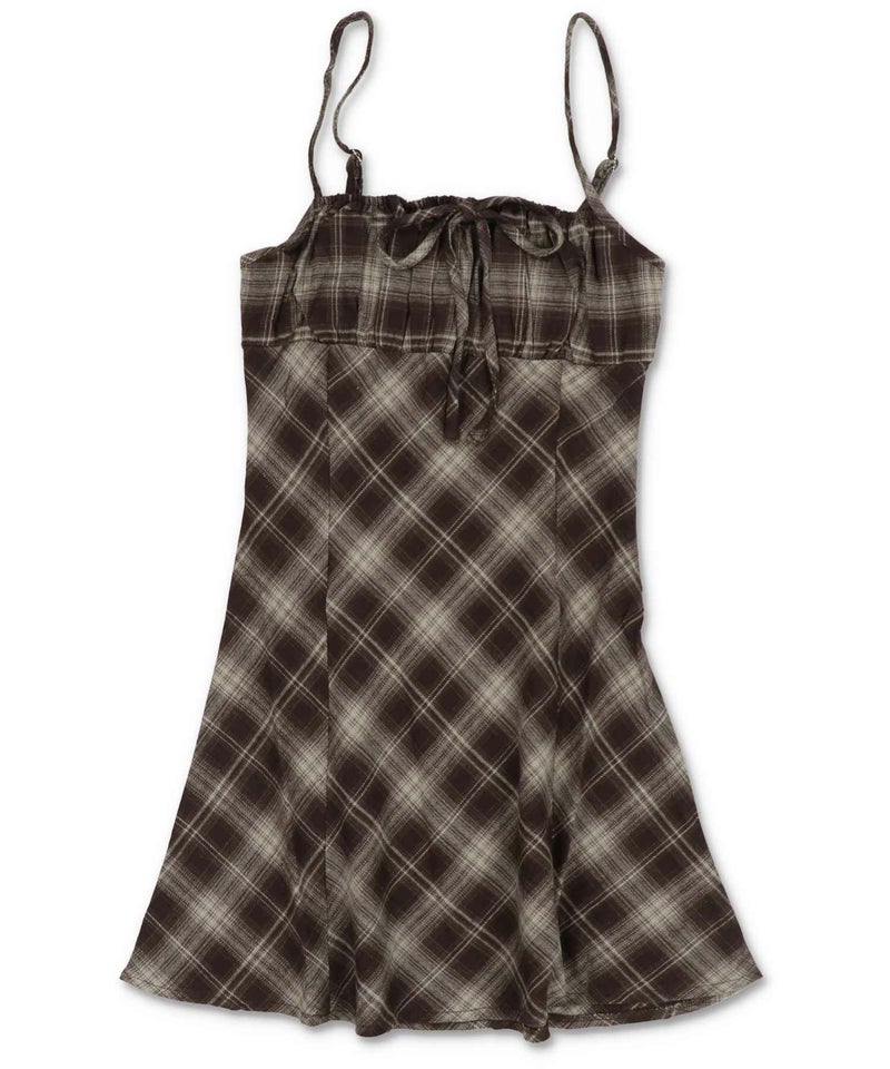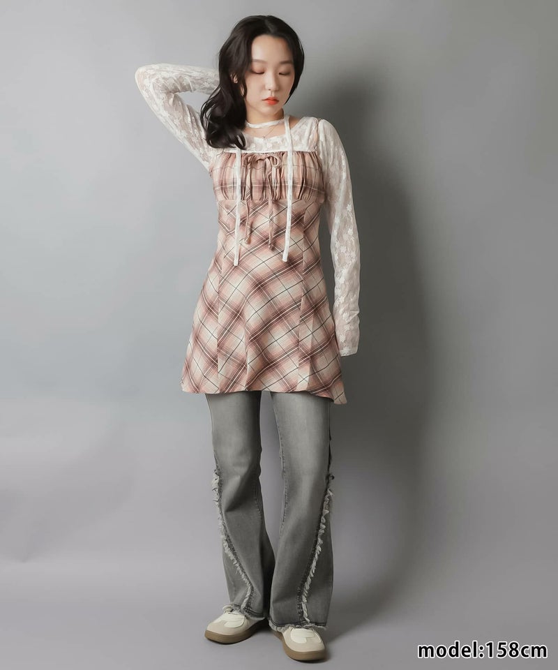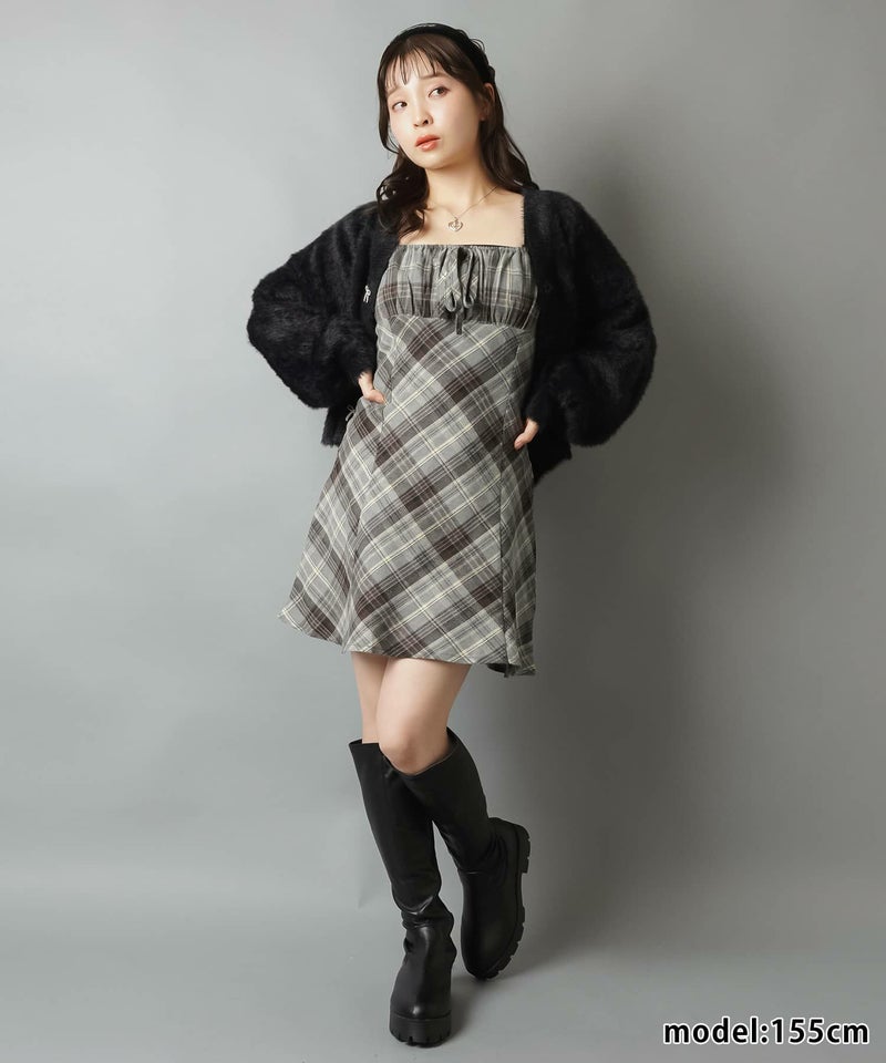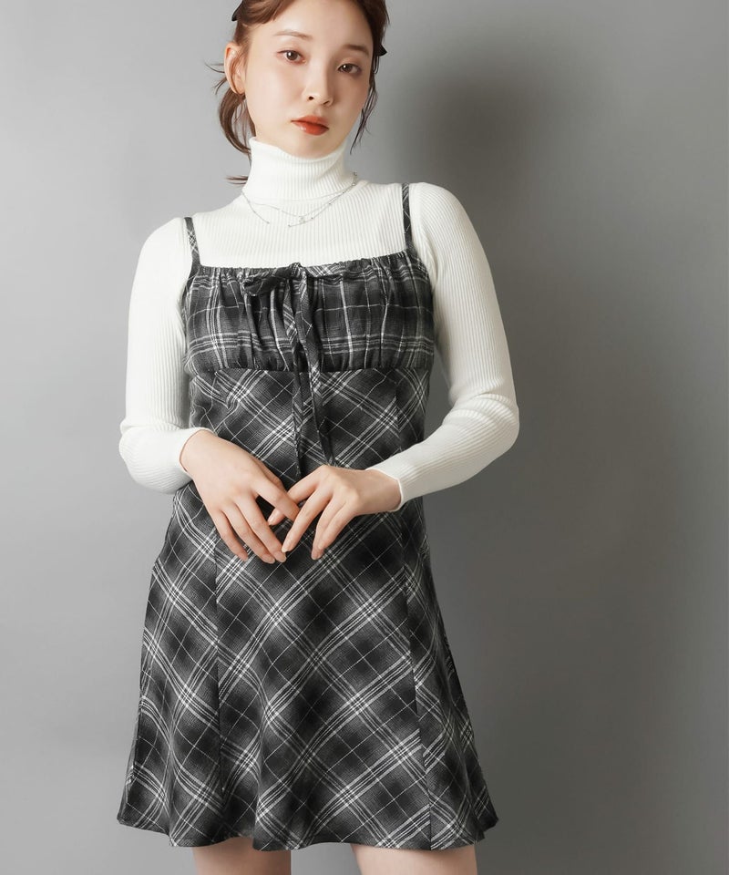 【レイヤードスタイルにピッタリなチェック柄×リボンが目を惹くミニキャミワンピ?】