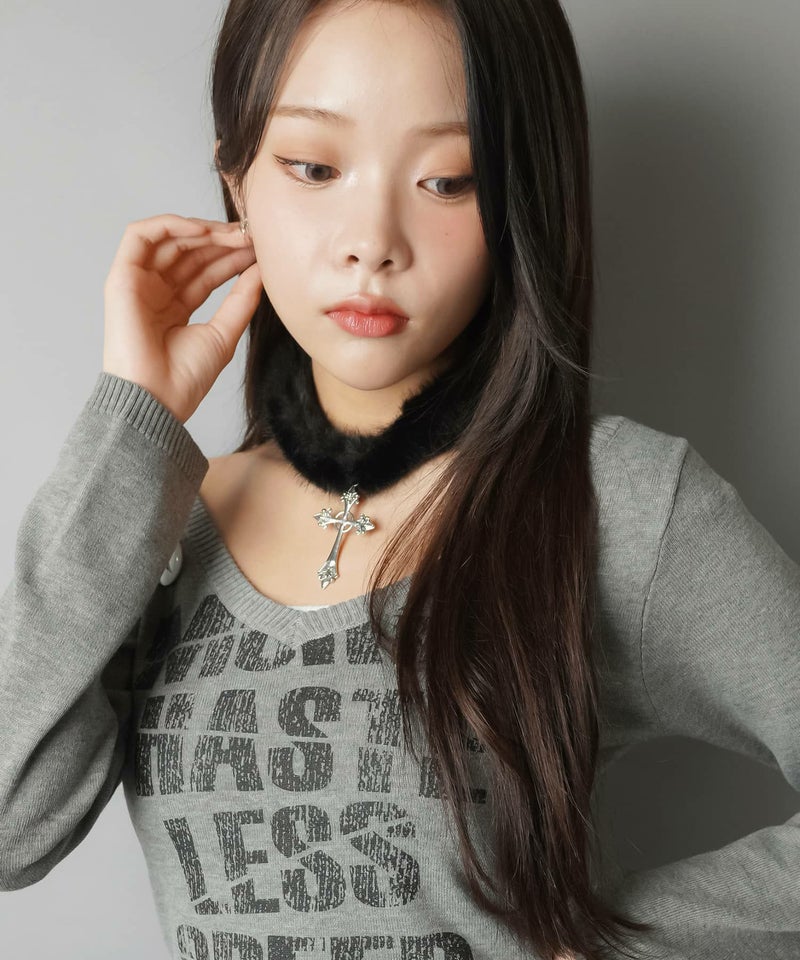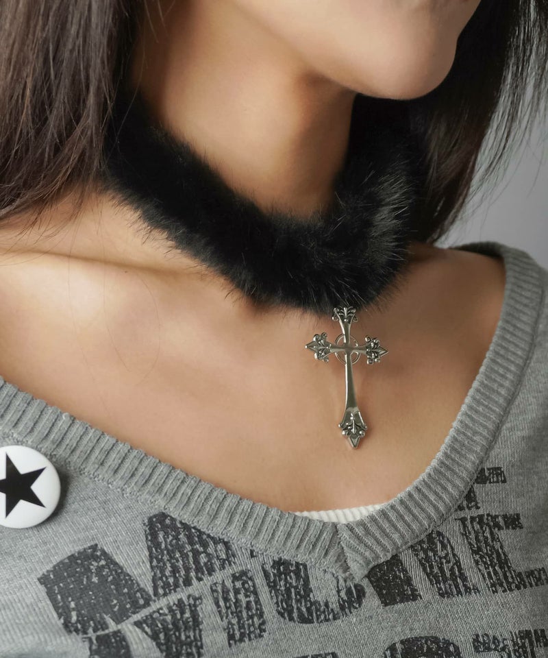 【38%OFF】フェイクファーチョーカー/クロス<メール便対応>