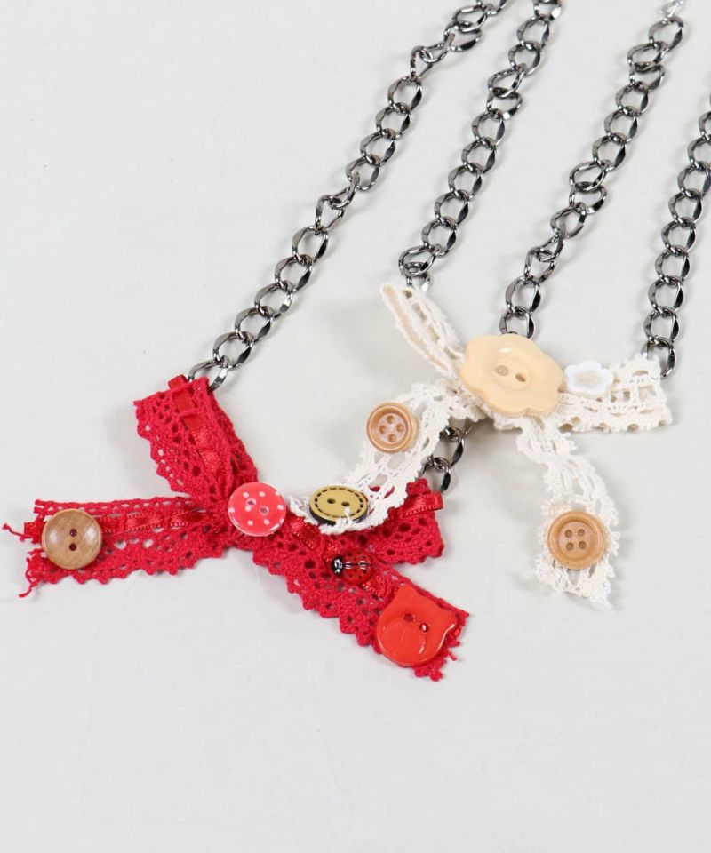 【69%OFF】ボタンネックレス/レースリボン/#NEO森ガール<メール便対応>