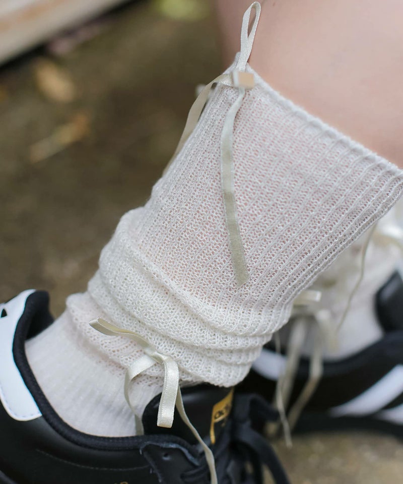 【92%OFF】#バレエコア/ラメリボンハイソックス