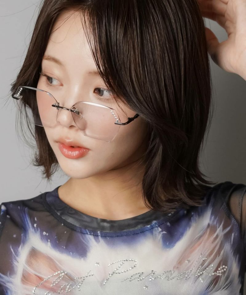 【94%OFF】リムレスメガネ/フレームレスメガネ/ヘキサゴン/ラインストーン