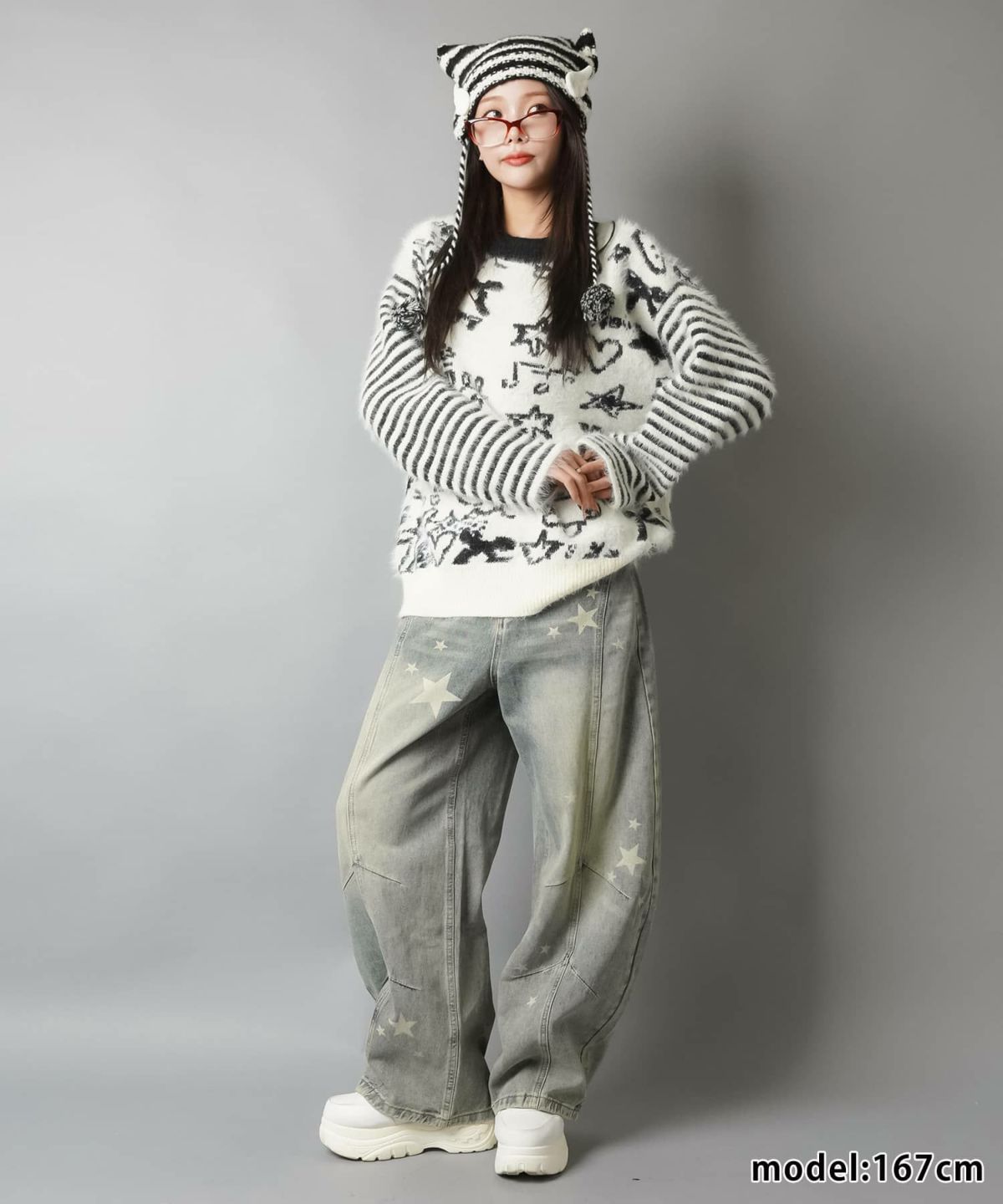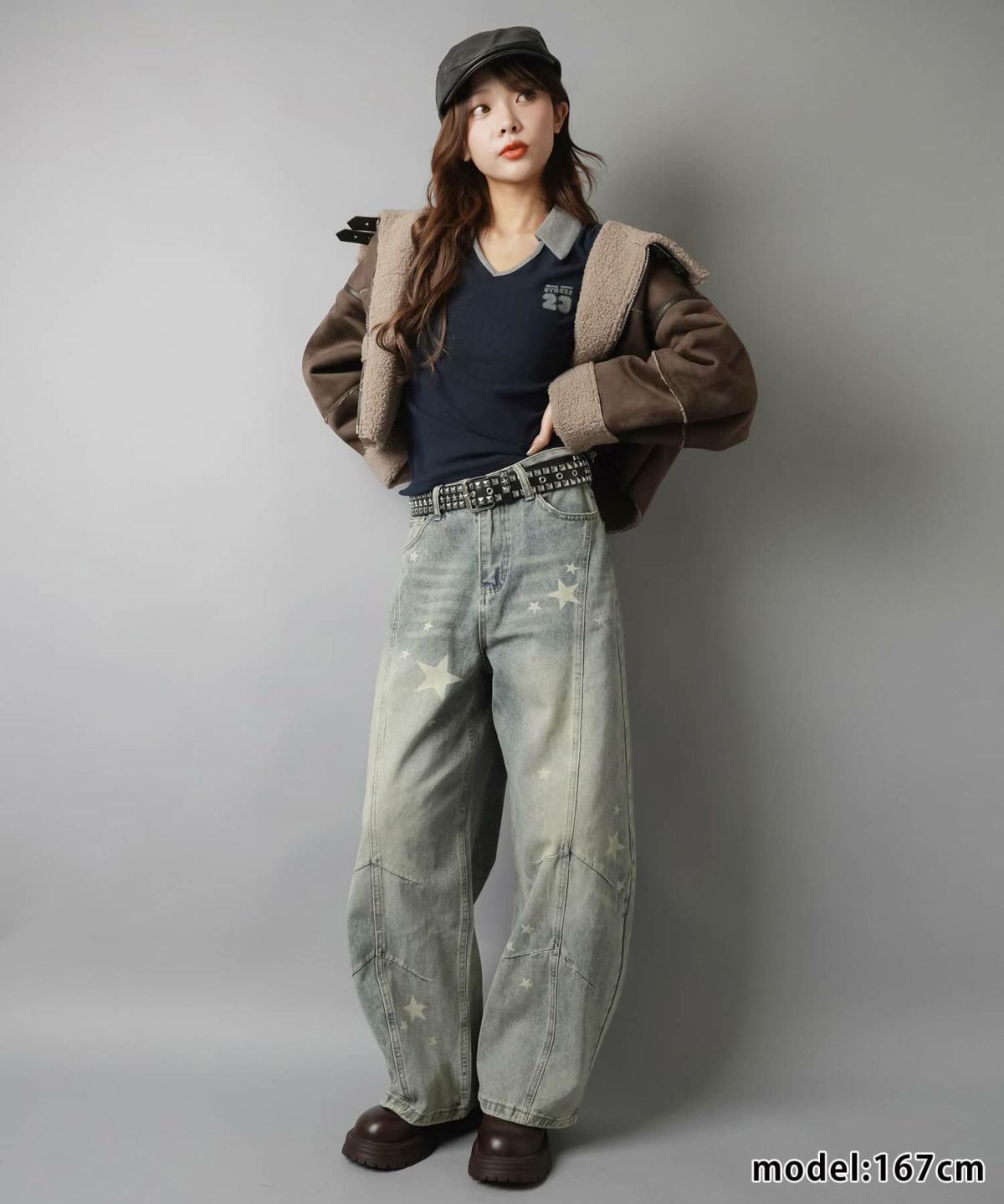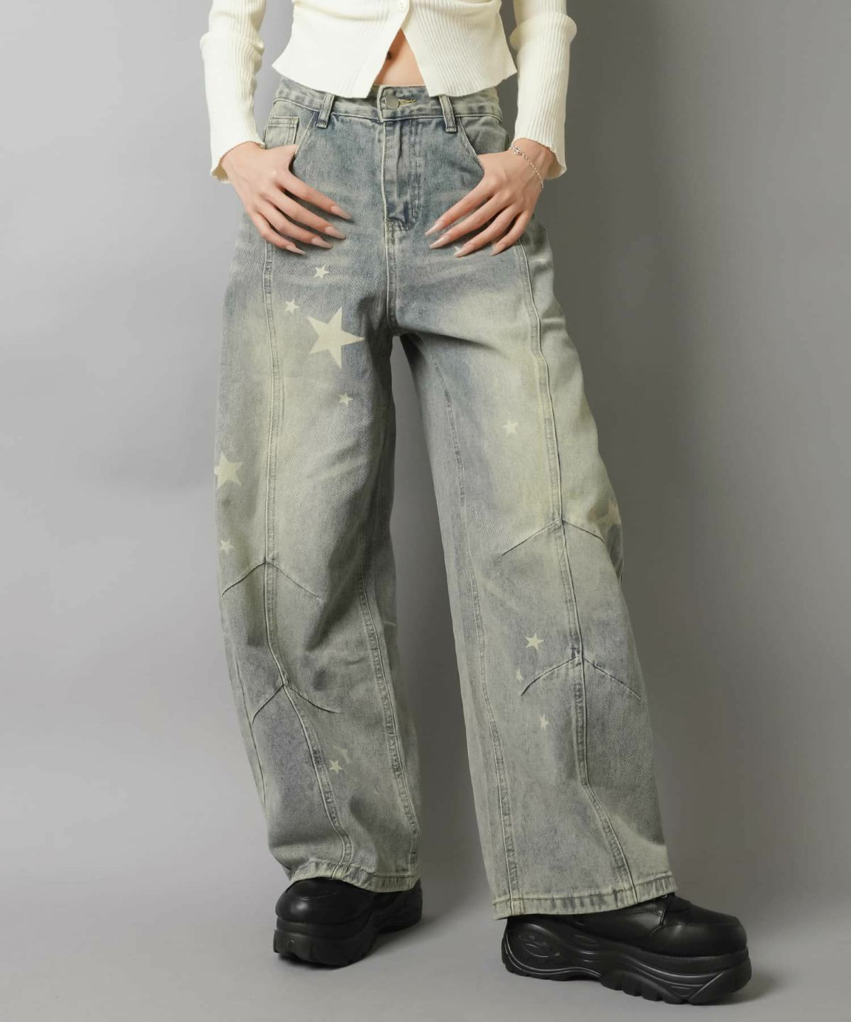 他の画像を見る 【34%OFF】デニムカーブパンツ/バレルレッグパンツ/スター/星柄 ¥ 6,589 → ¥ 4,389 税込 SALE 2点以上10%OFFクーポン対象 カートに入れる お気に入りに追加