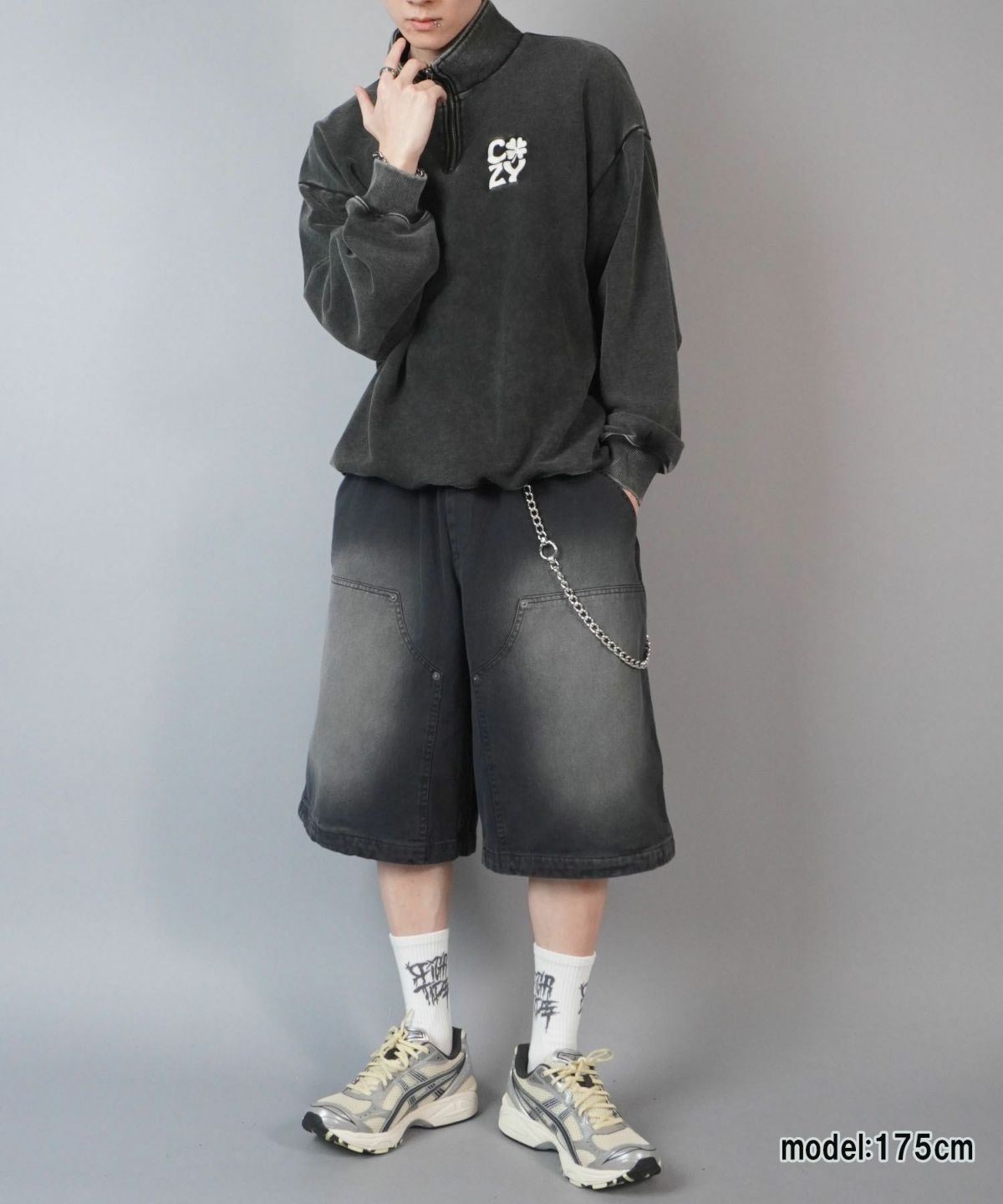 ストリート&古着MIX! 【21%OFF】ヴィンテージライクダブルニーデニムワイドパンツ