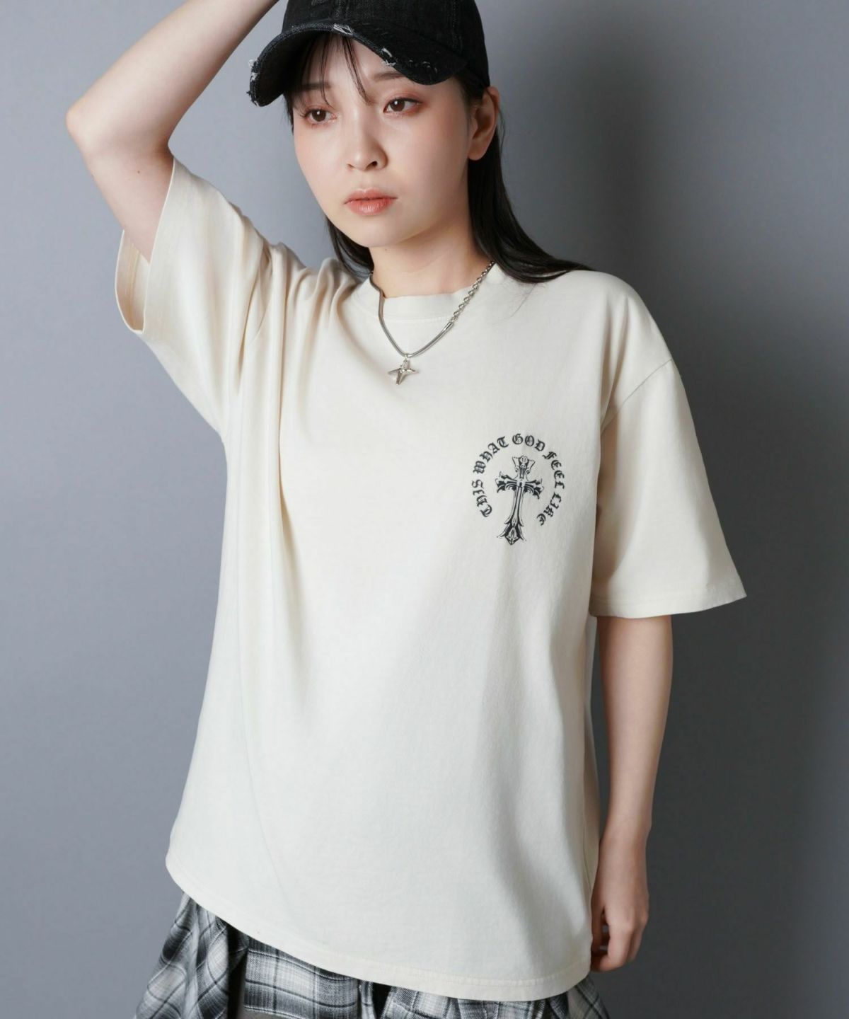 54%オフ🔥 【84%OFF】ピグメント加工 短丈Tシャツ/クロスロゴ/バックプリント