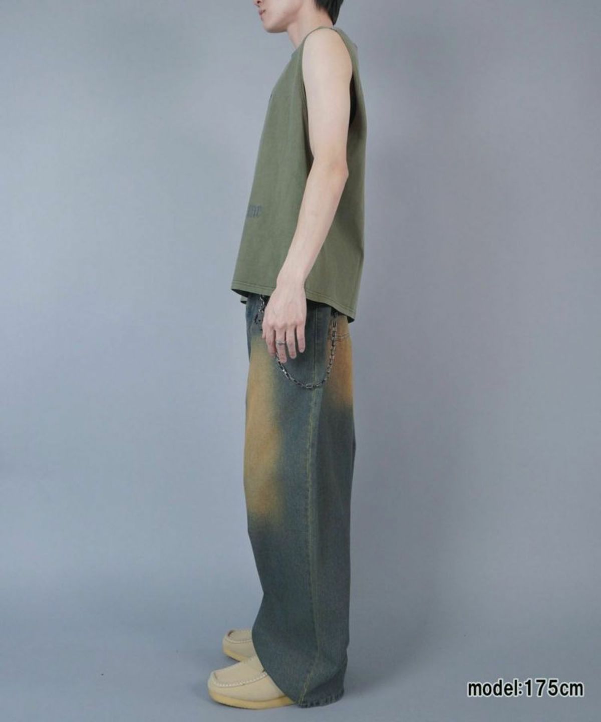 54%オフ🔥 【80%OFF】ピグメント加工ノースリーブTシャツ/バックプリントクロス/短丈