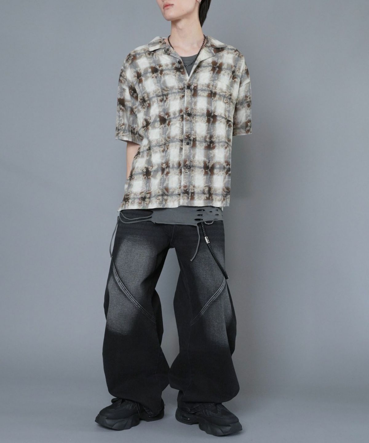 【89%OFF】オンブレオープンカラーチェックシャツ/ペイント