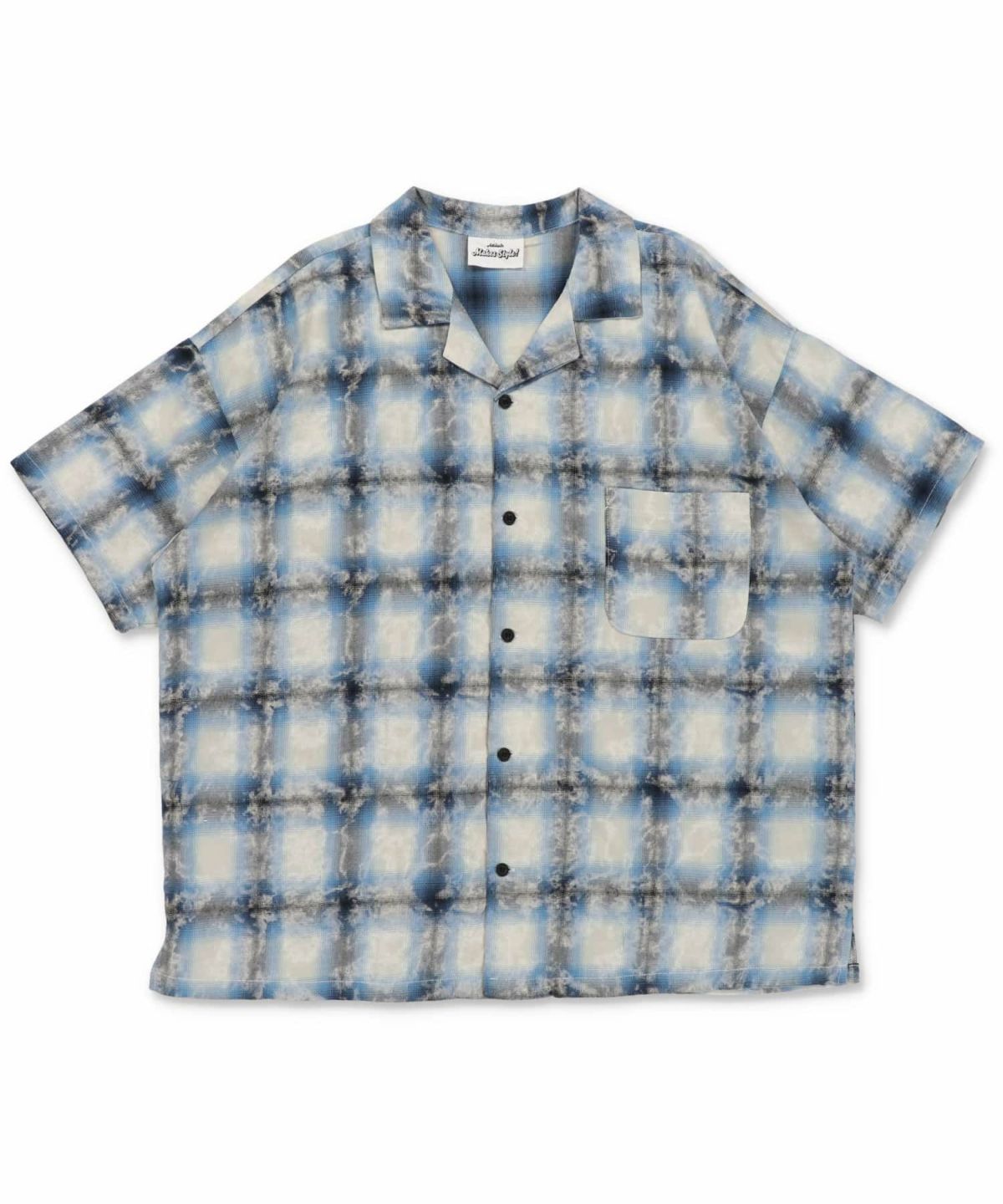 【90%OFF】オンブレオープンカラーチェックシャツ/バックロゴ