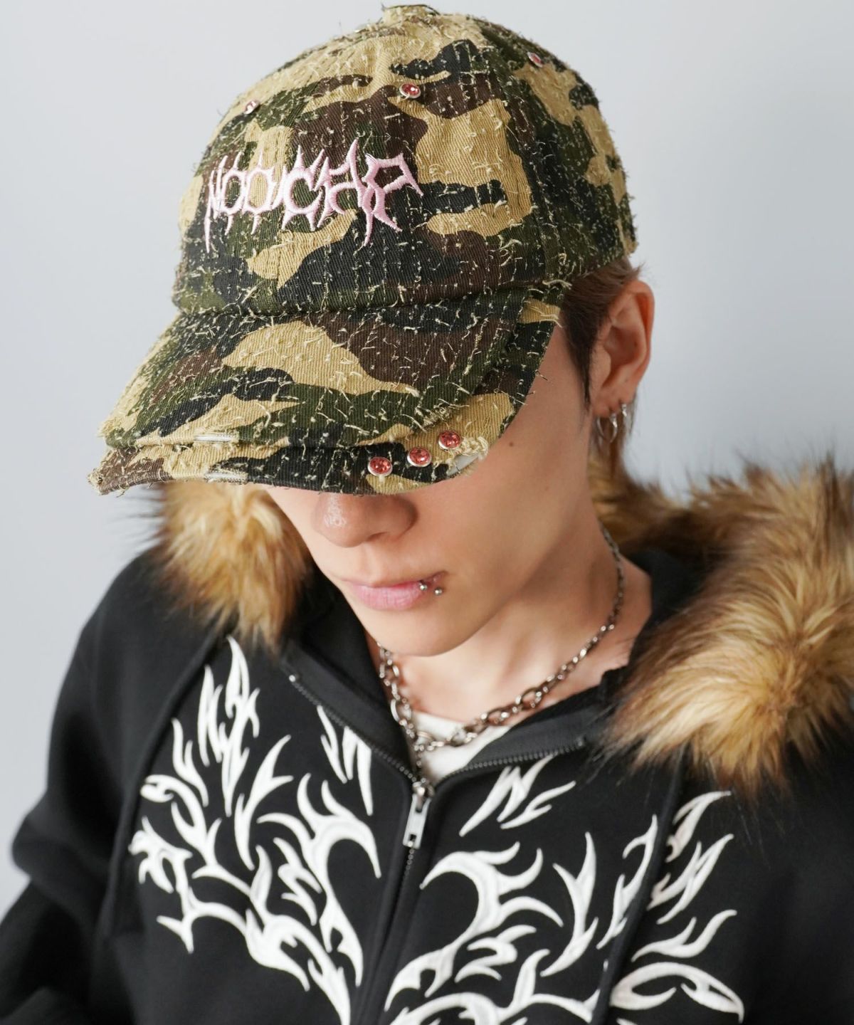 【21%OFF】 カモフラージュ柄コットンキャップ/刺繍ロゴ/ユニセックス