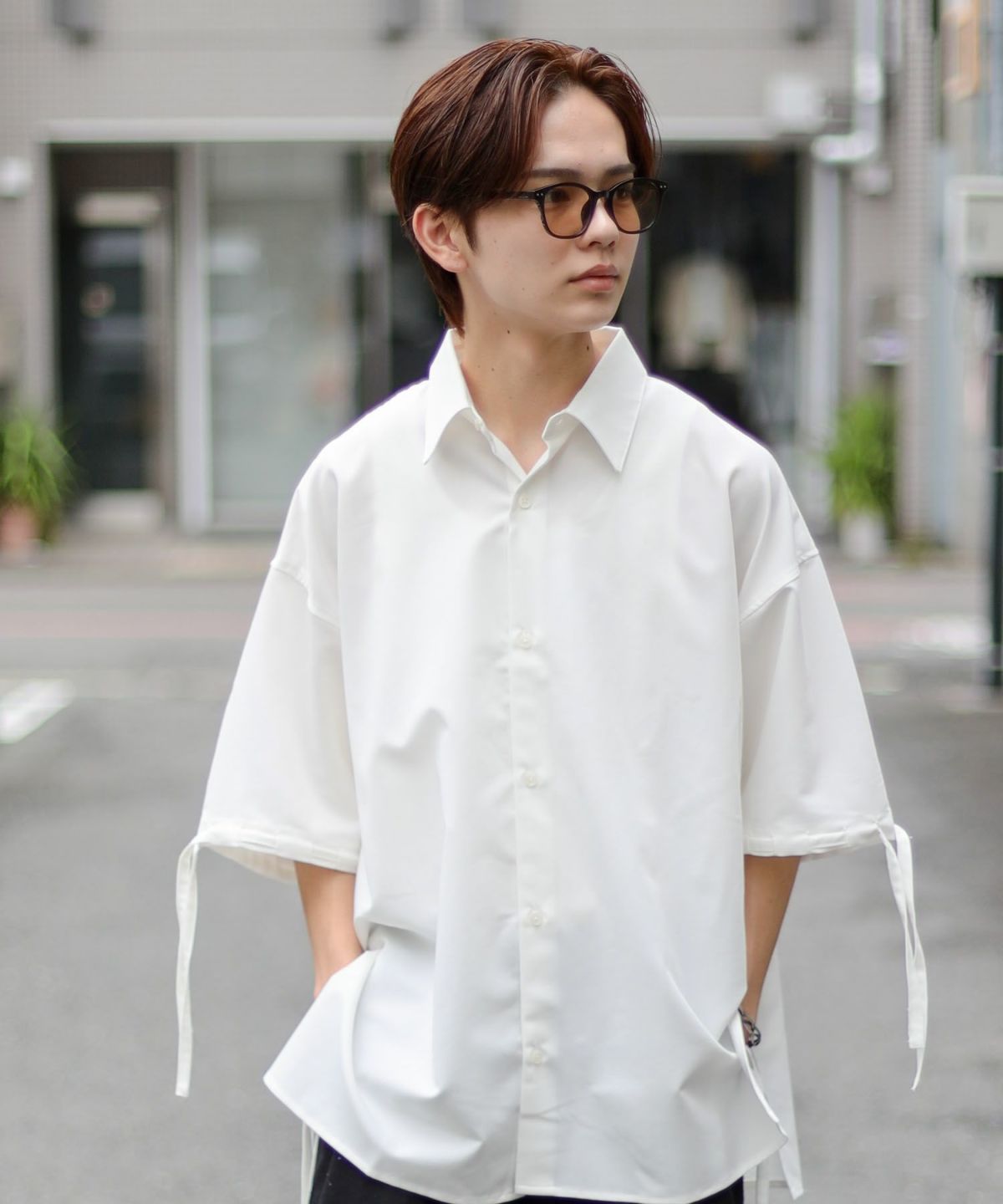 【88%OFF】ダメージ加工ジャガードオープンカラーシャツ