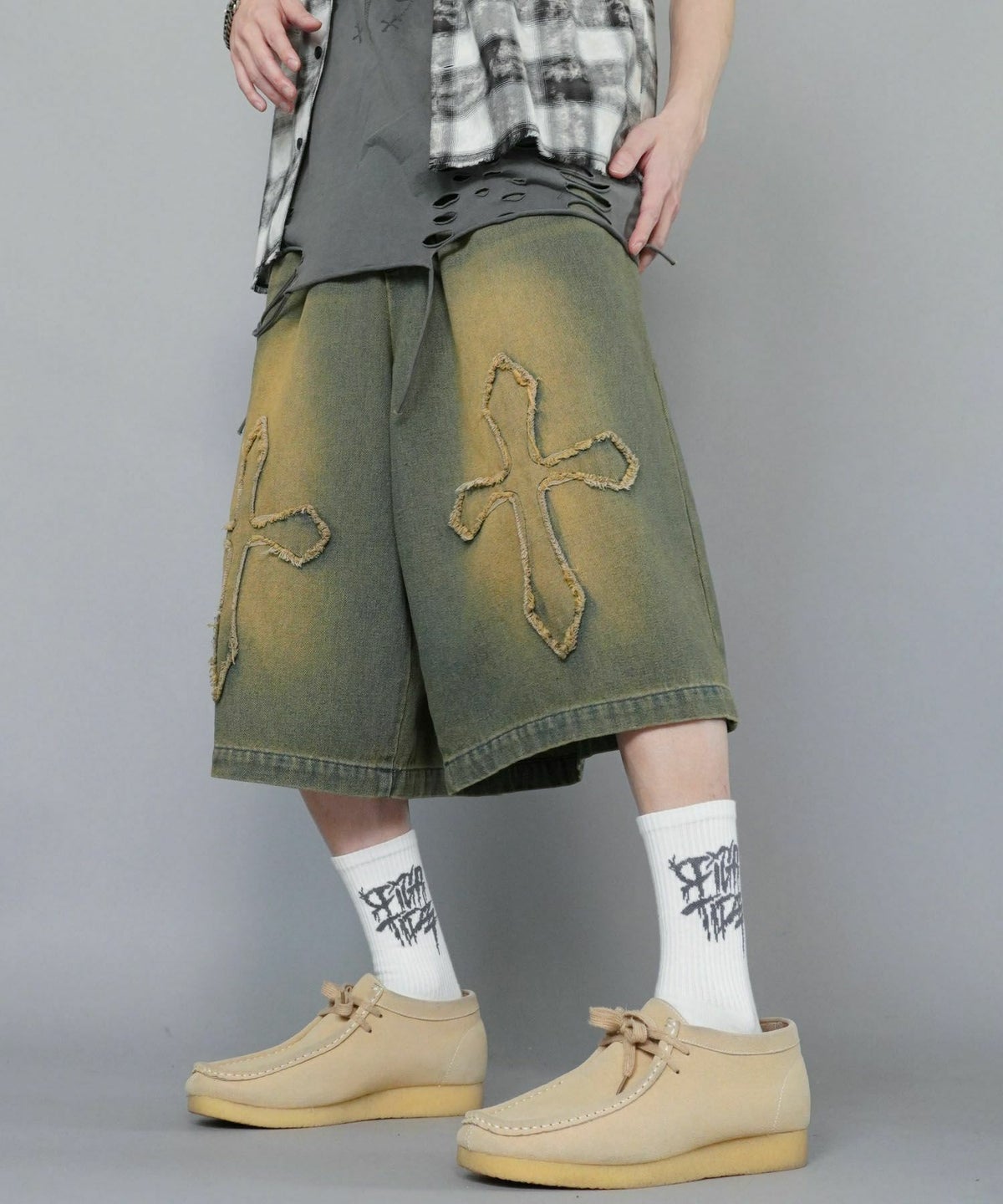 SOLD OUT 他の画像を見る 【12%OFF】ヴィンテージ加工バギーデニムハーフパンツ/クロス/膝下ロング丈/ジョーツパンツ ¥ 4,950 → ¥ 4,389 税込 SALE UNISEX カートに入れる お気に入りに追加
