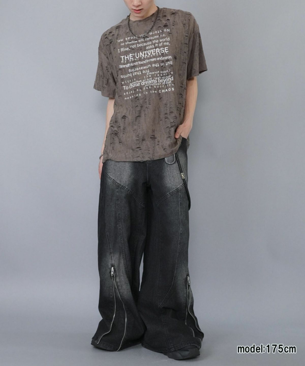【86%OFF】グランジダメージTシャツカットソー/メッセージロゴ