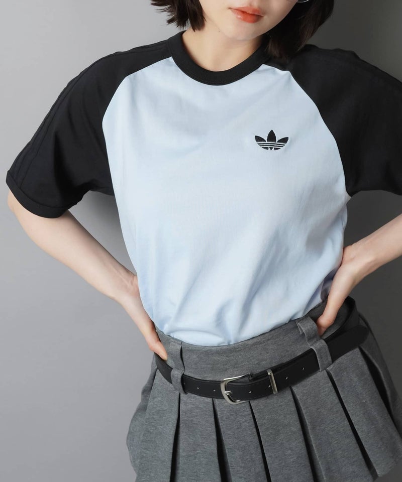 袖に施された大胆なスリーストライプスが独特でスポーティなエッジを効かせつつも、レギュラーフィットとラウンドネックがリラックス感とスタイリッシュさを漂わせる。