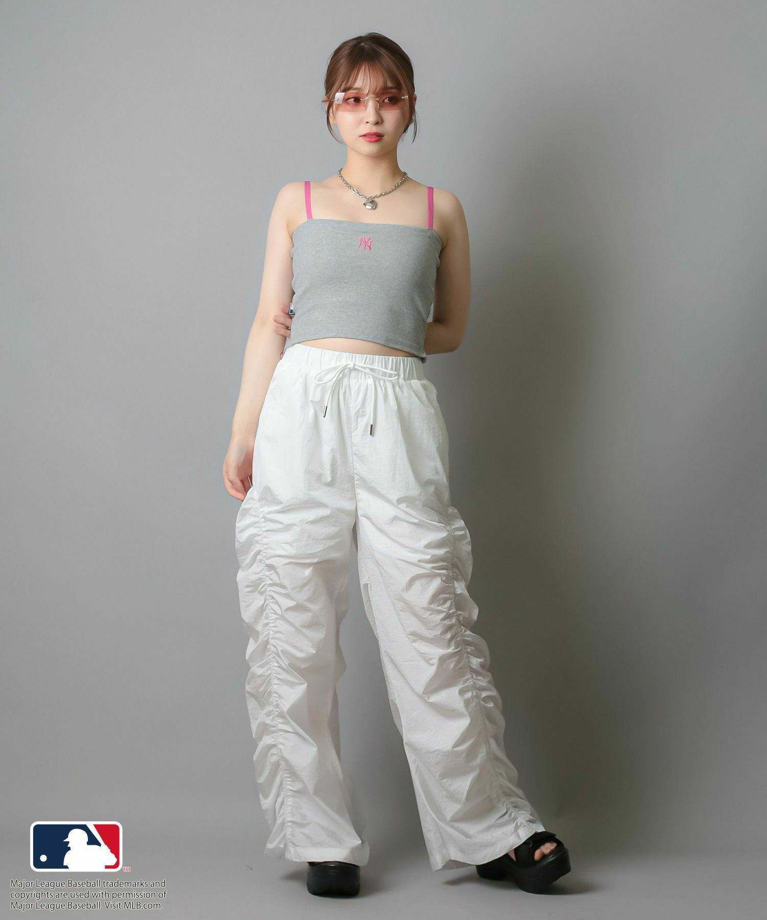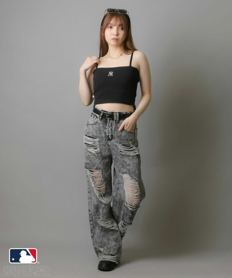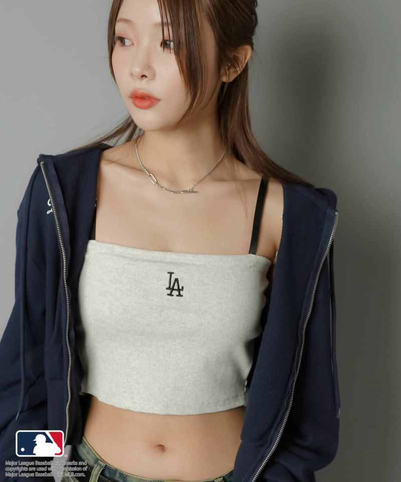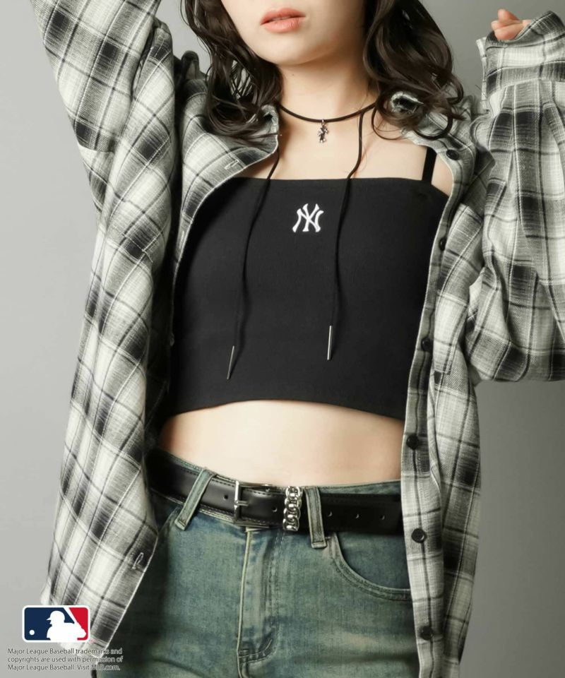 華奢な肩紐が首周りをすっきりと魅せてくれて、シンプルながらも立体感のあるMLB刺繍ロゴが目を惹くキャミソール