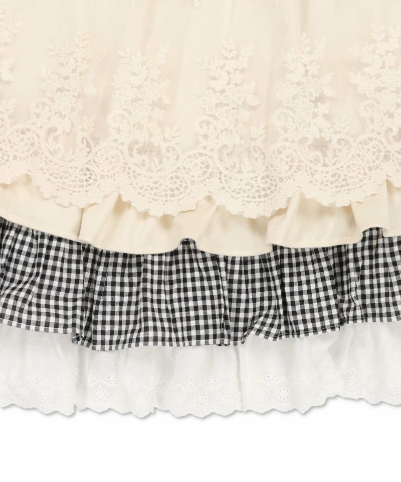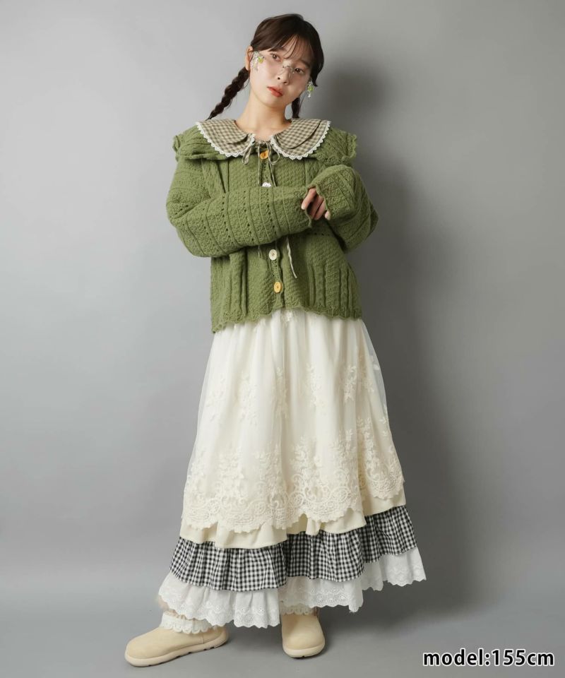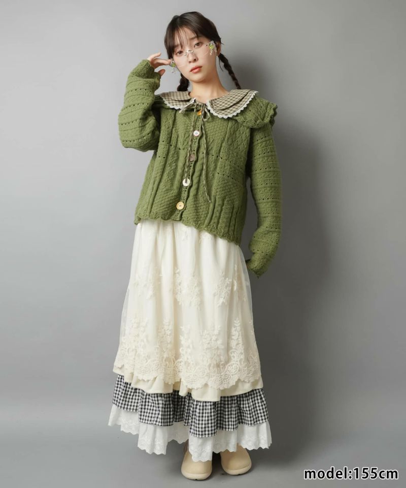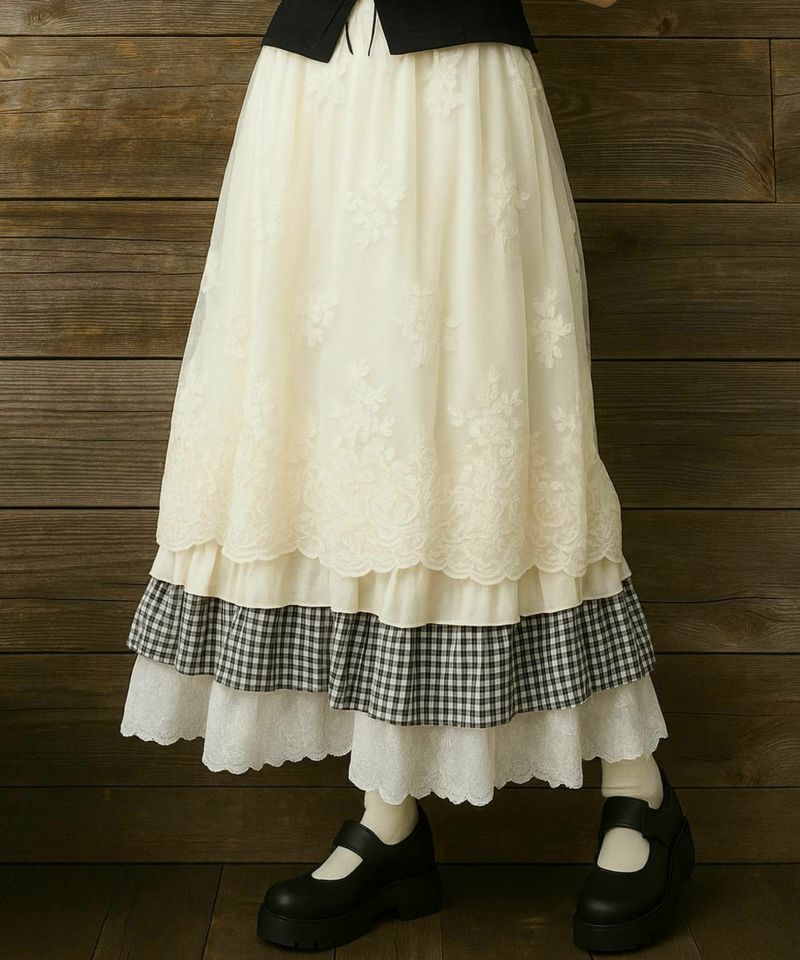 【レトロな雰囲気が可愛い♡異素材レイヤードロングスカート】