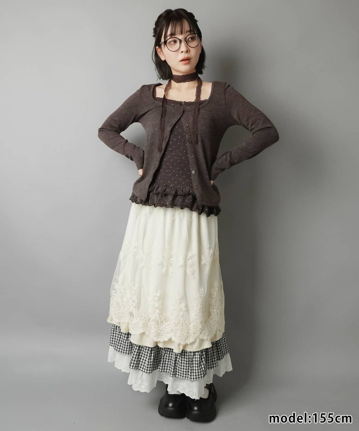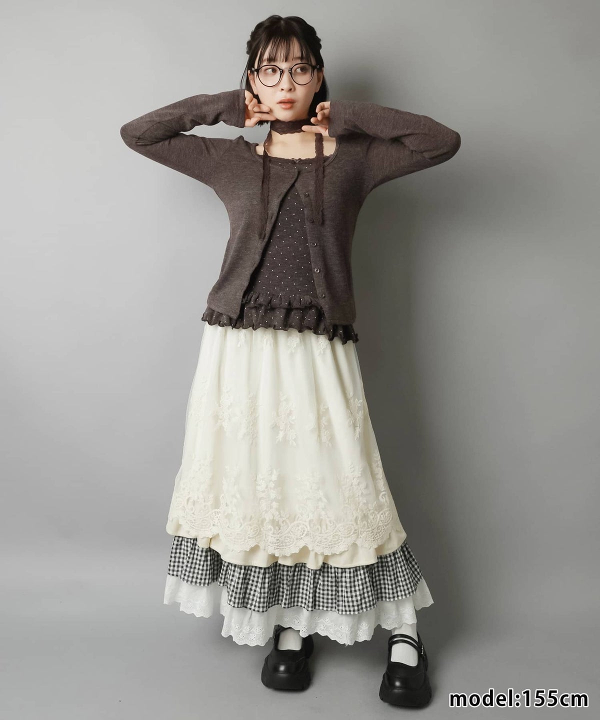 他の画像を見る レース×フリル×ギンガムチェック…♡重ねた質感がとびきり可愛い♪ 異素材レイヤードロングスカート/4段レイヤード/レース/#NEO森ガール ¥ 5,489 税込 再入荷 2点以上10%OFFクーポン対象 カートに入れる お気に入りに追加
