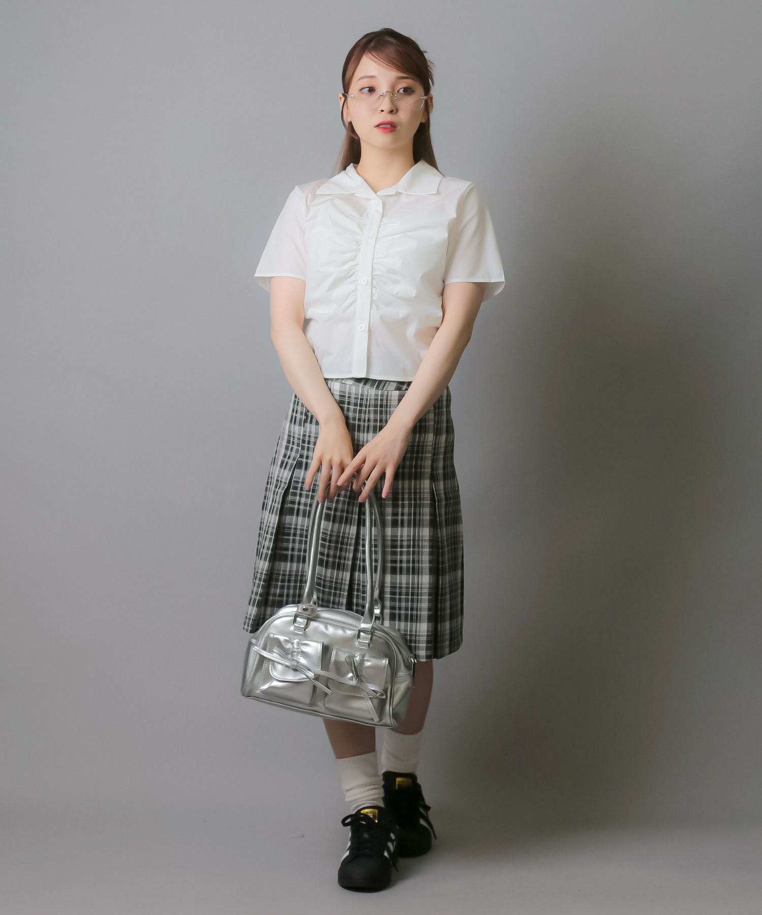 ウエストラインを強調するスカートを取り入れるのがポイント。