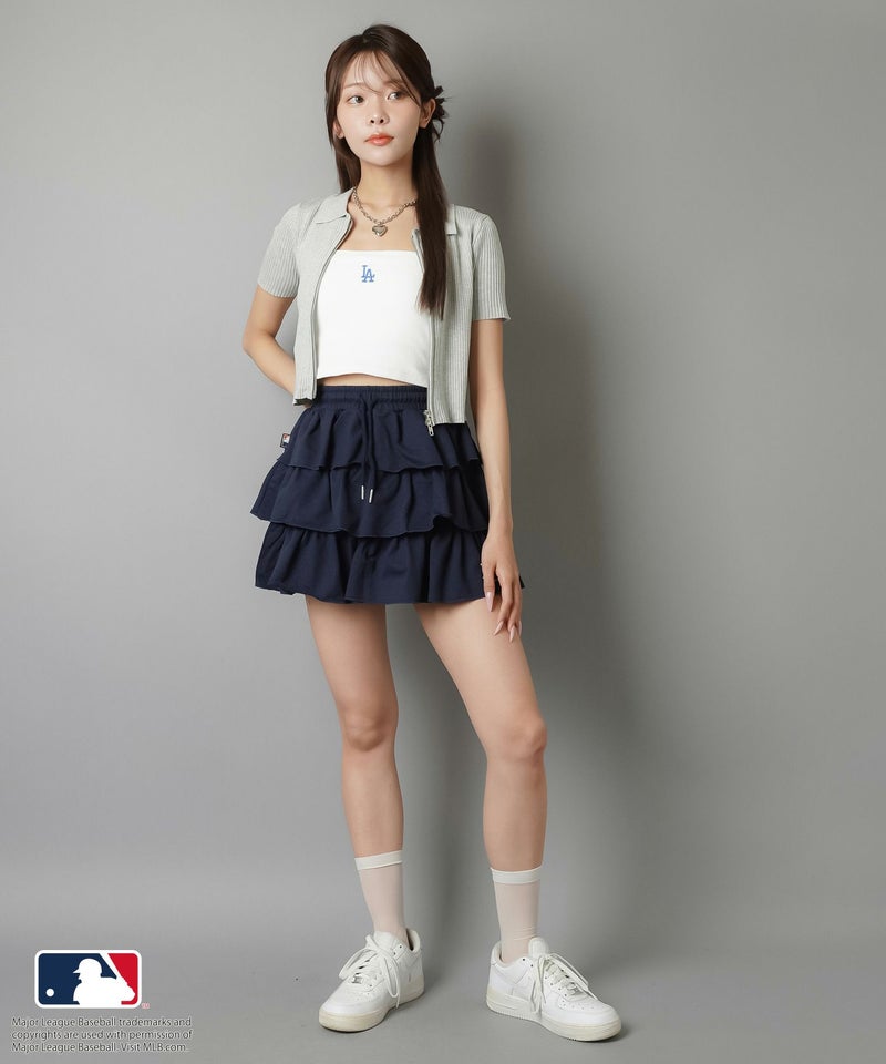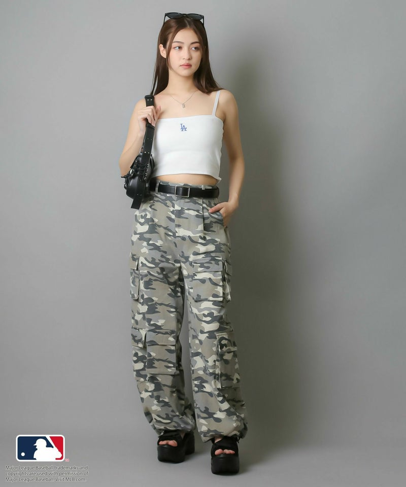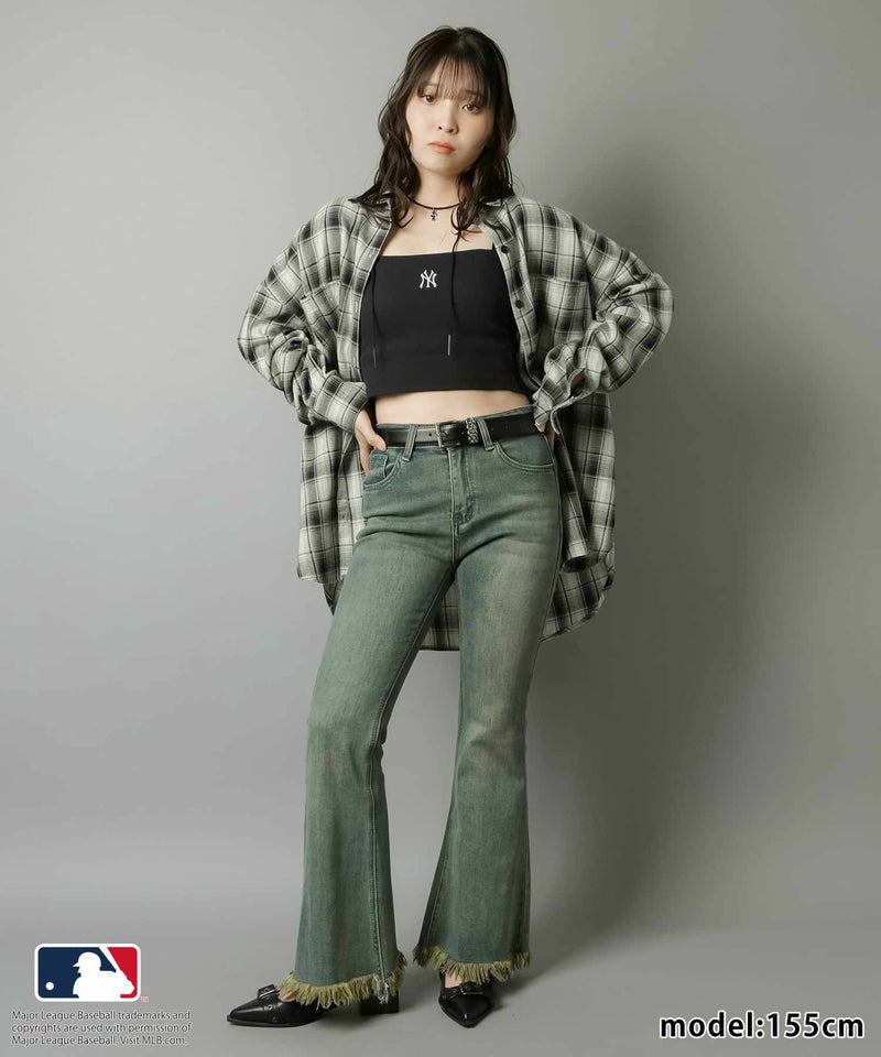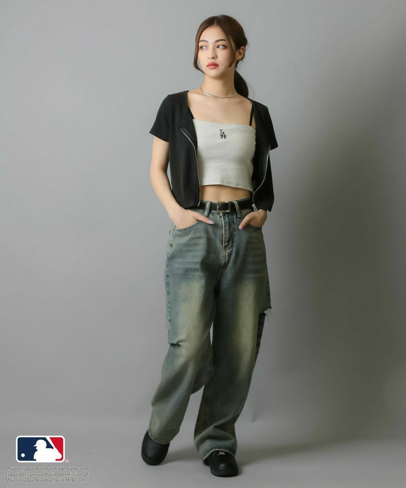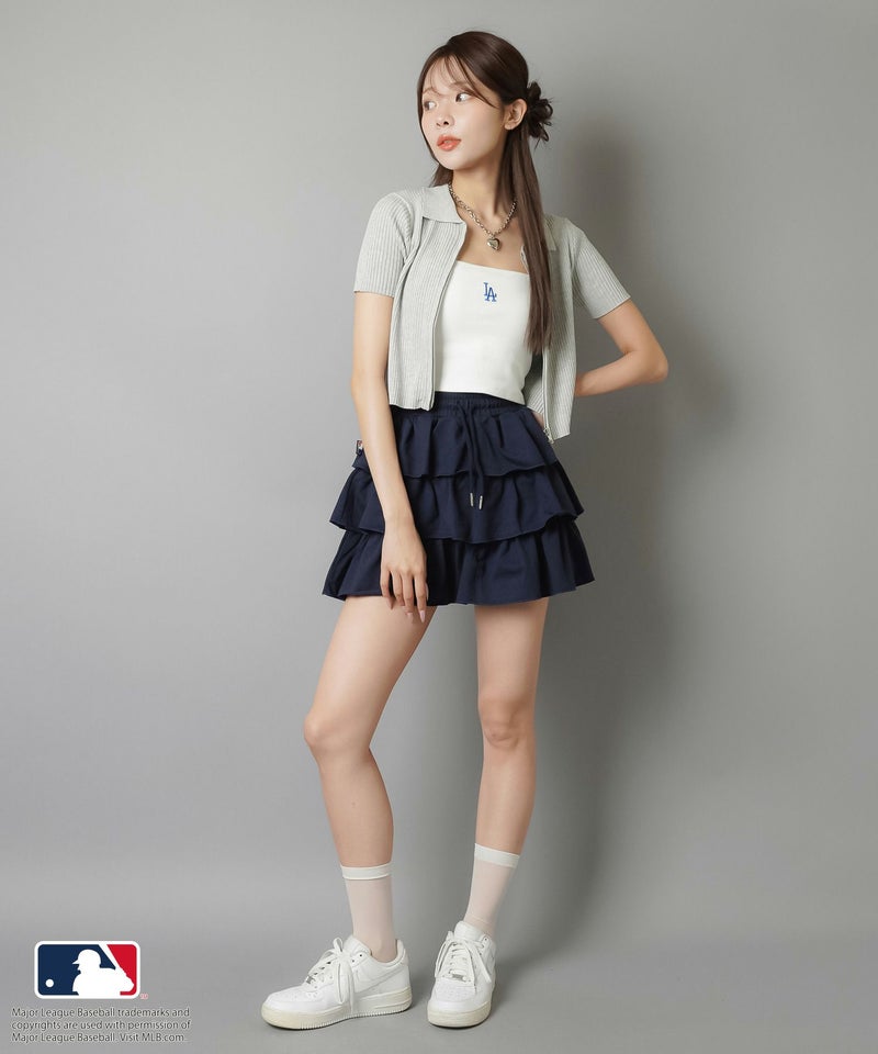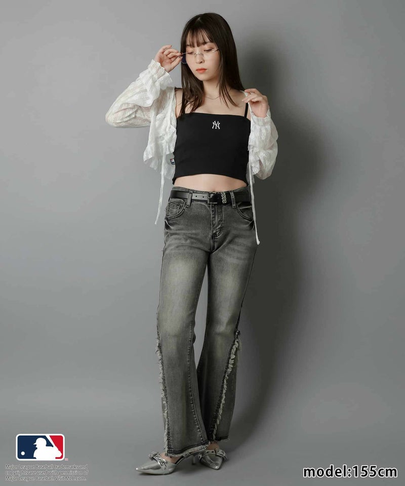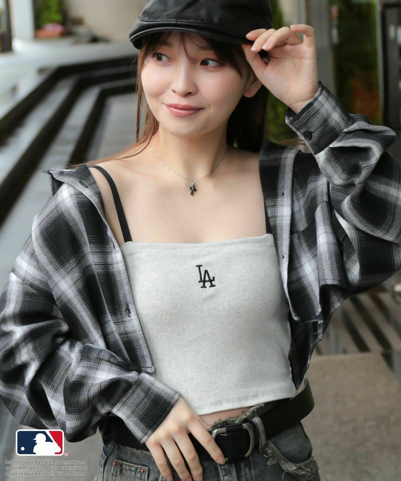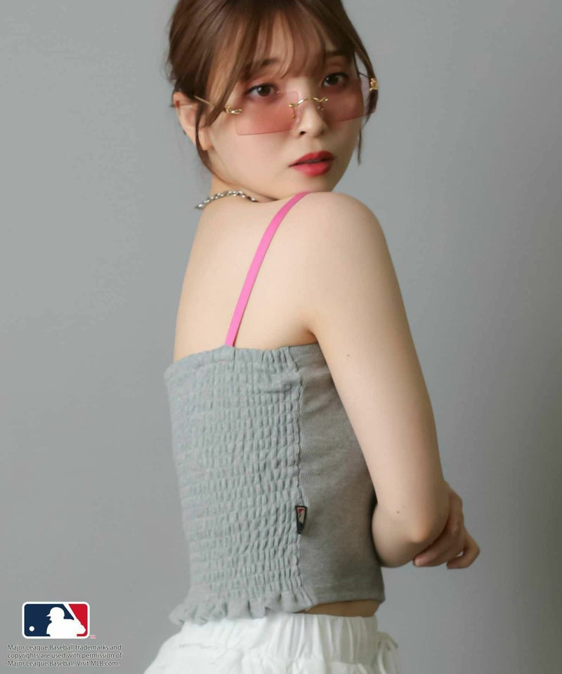 華奢な肩紐が首周りをすっきりと魅せてくれて、シンプルながらも立体感のあるMLB刺繍ロゴが目を惹くキャミソール
