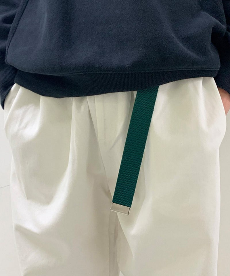 シンプルデザインで細すぎず太すぎない幅の仕様なので、スキニーなど細めのボトムからワイドパンツなどのボトムを選ばず合わせやすい。