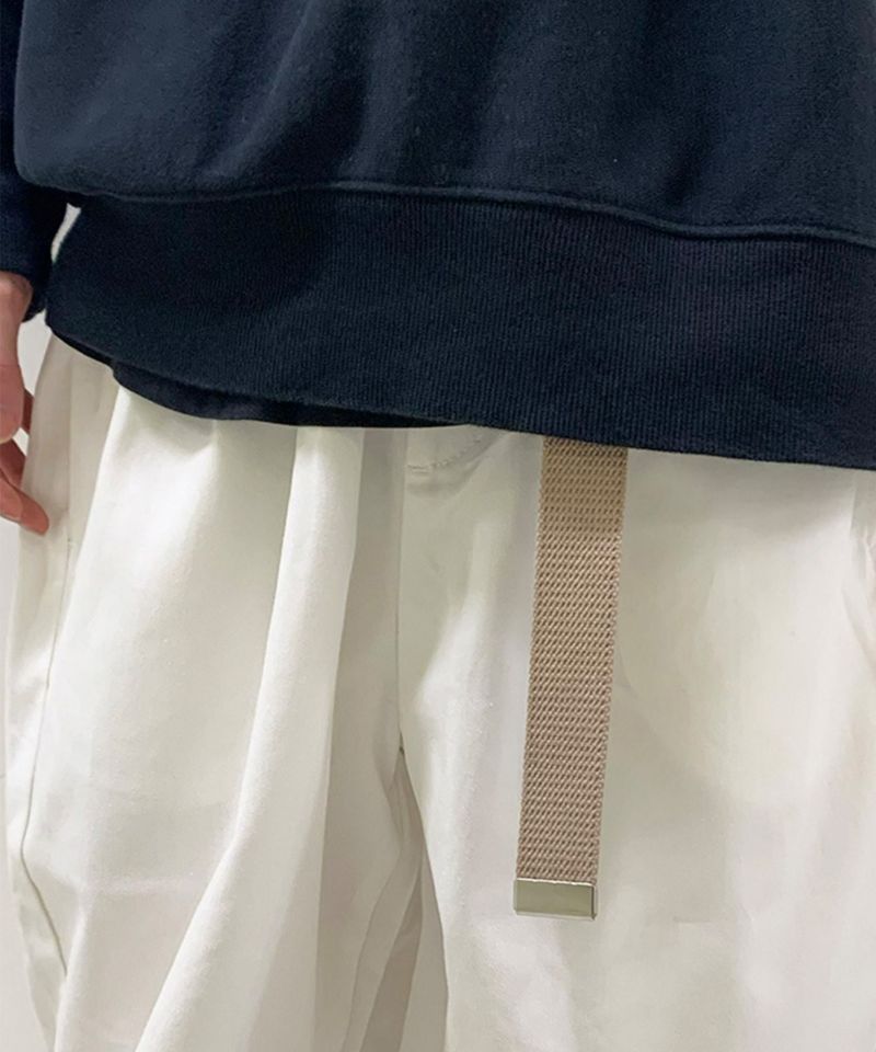 ベルトを垂らして少し見せるだけでコーデ全体のバランス感を整えてくれてスタイルを良く魅せてくれる。