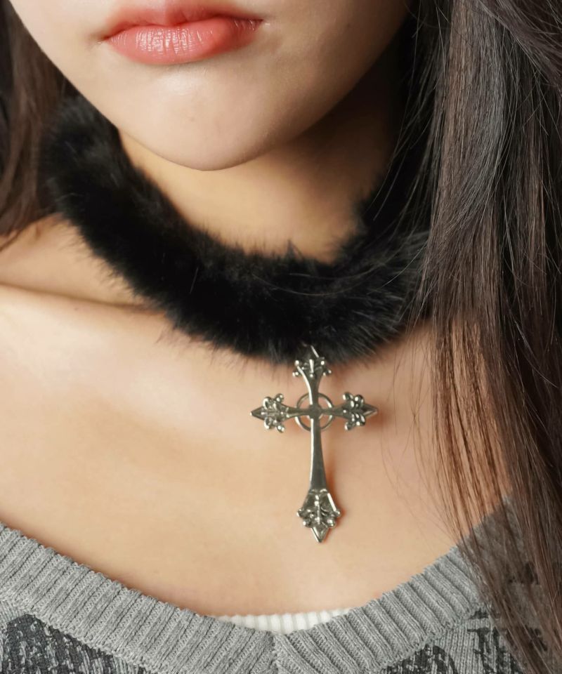 フェイクファーチョーカー/クロス<メール便対応>