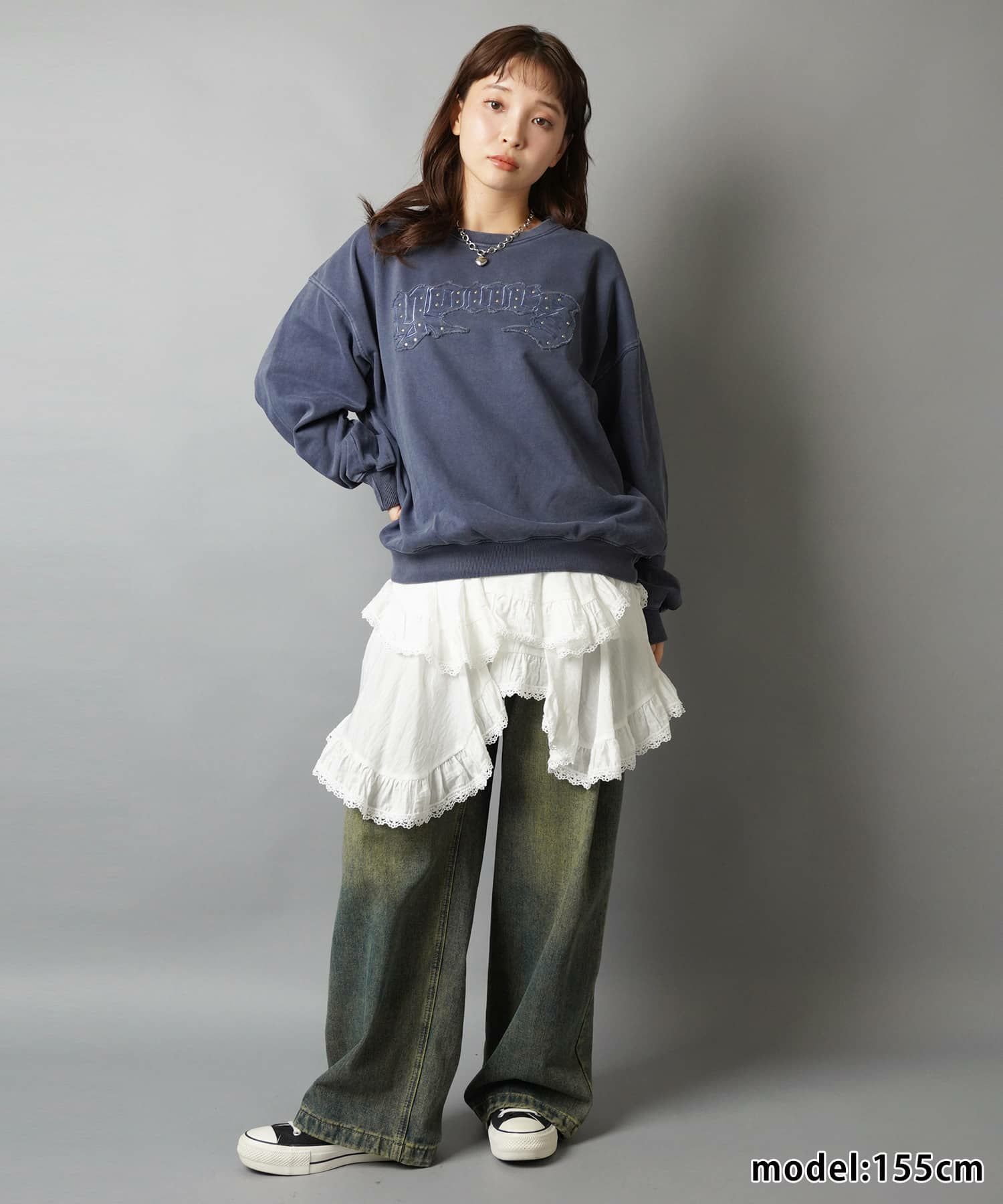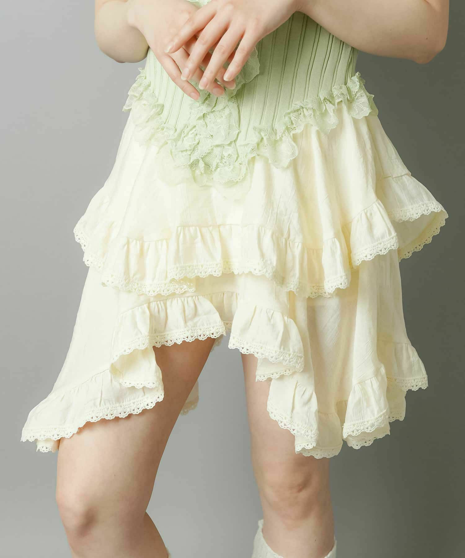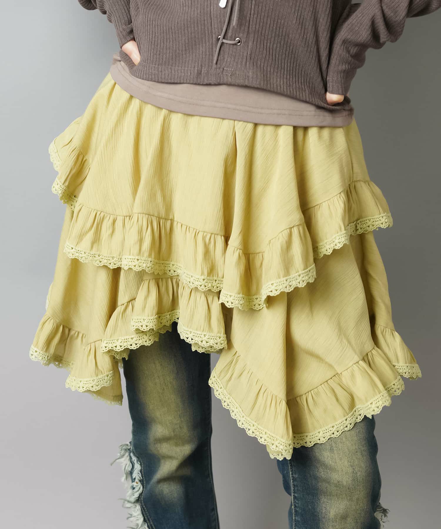 デニムレイヤードでNEO森ガールに🌳 イレヘムレースミニスカート/インナーパンツ付き