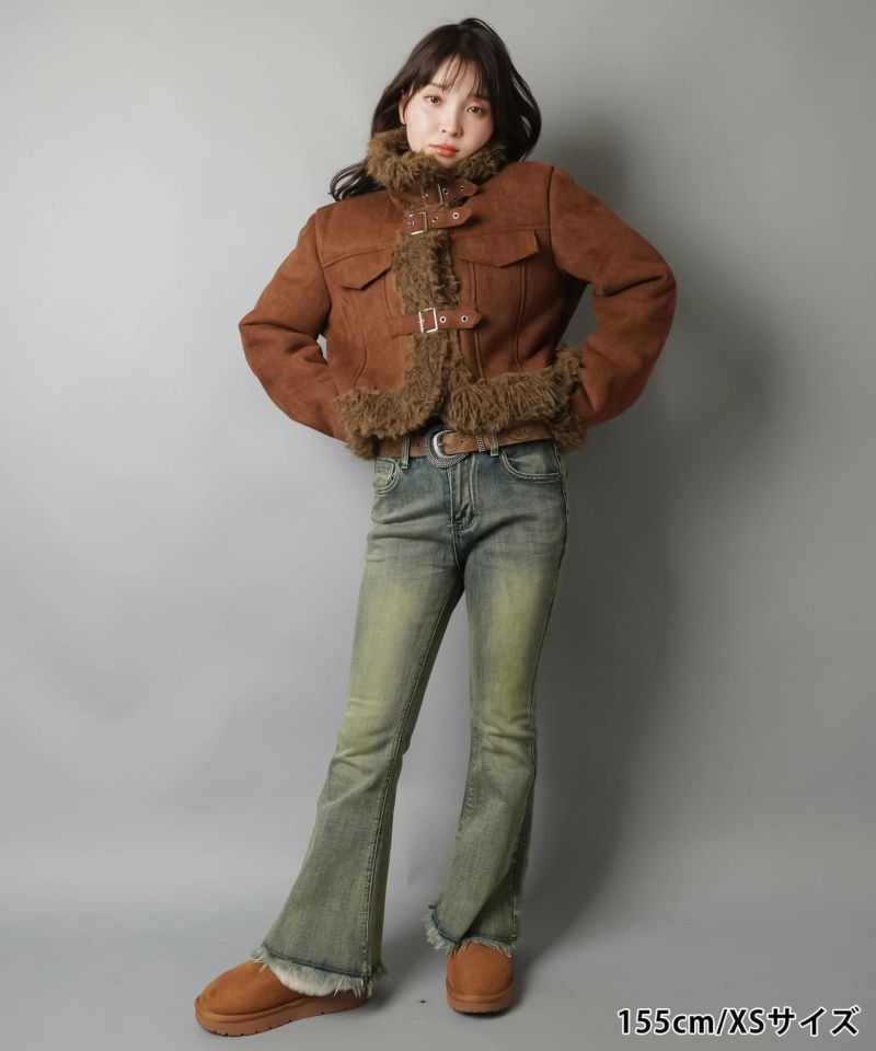 \裾のフリンジデザインと加工感のある色味がトレンド感たっぷり★/