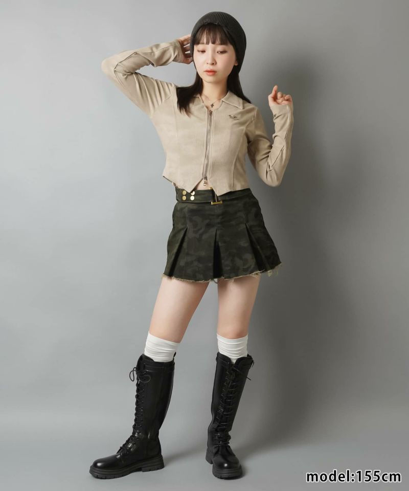 ハイウエストパンツやスカート:?ジッパーの開閉でウエストラインを強調