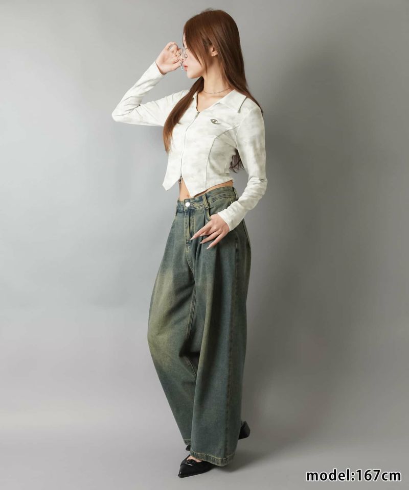 ローライズデニム:?下部のジッパーを開けて、Y2K風の着こなしに?