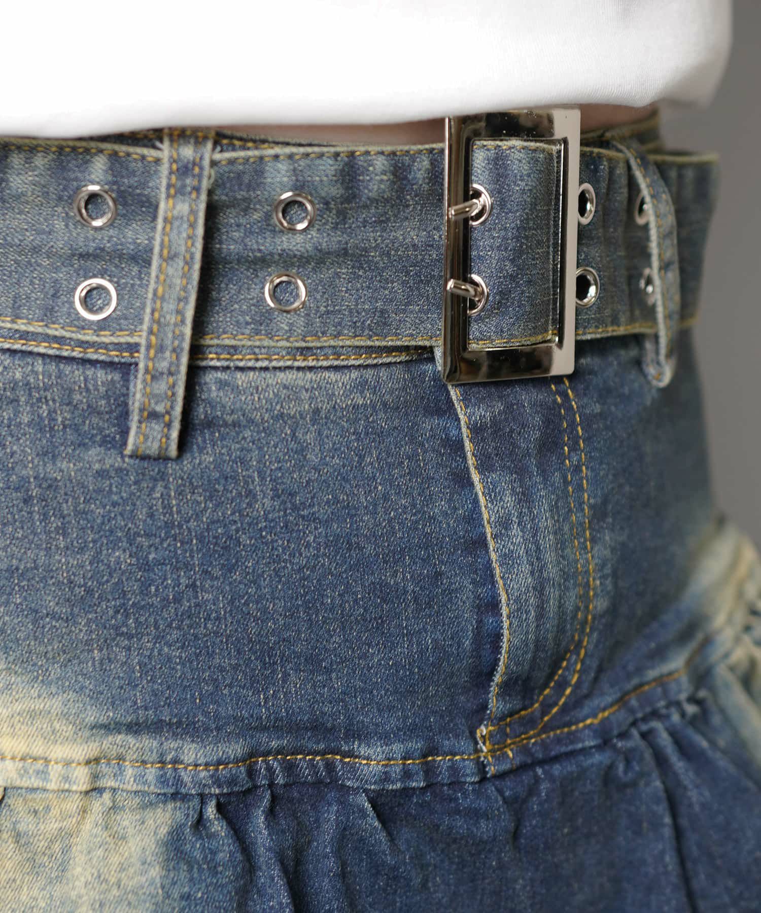 【ギャルがリバイバル?ギャルっぽ☆ベルト付きデニムミニスカ】