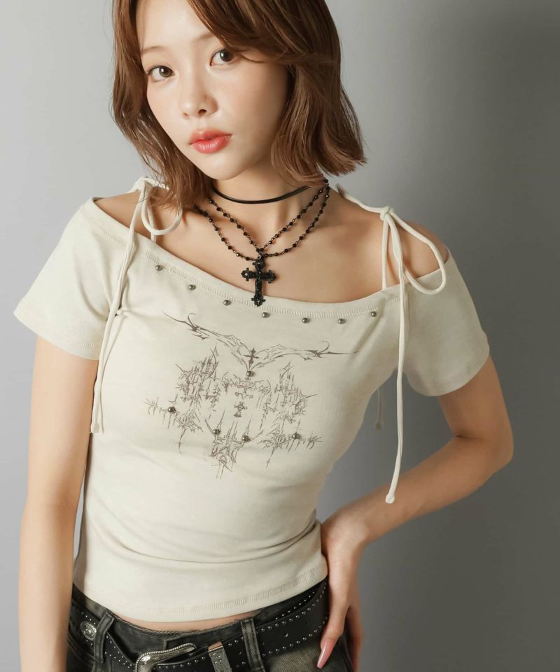 【肩リボンで女性らしさ+オフショルでぬけ感をプラス?】