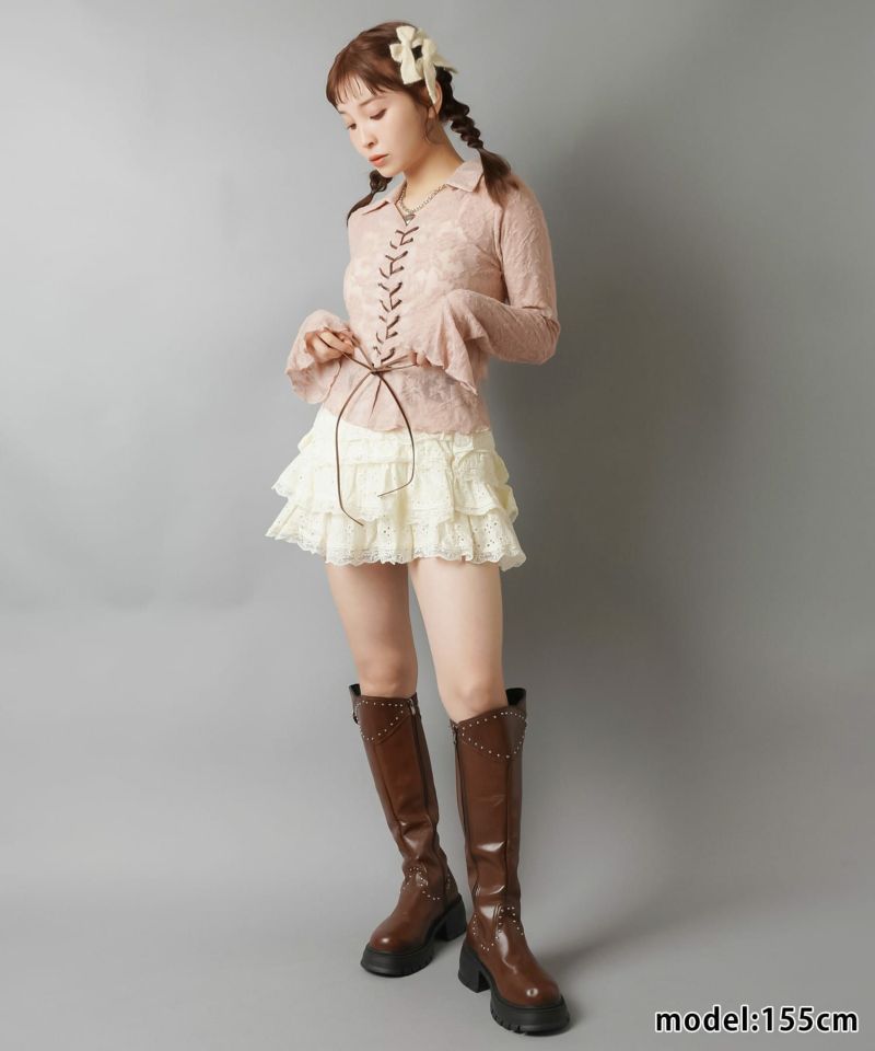 スカートにレギンスやタイツをレイヤードするのもポイント。
