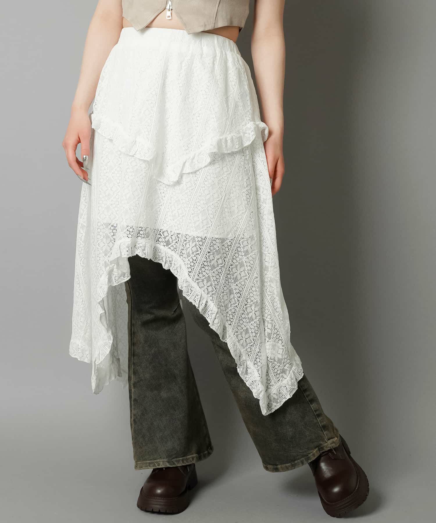 パンツレイヤードに使いたい♪ 【88%OFF】レースロングスカート/イレヘム/#NEO森ガール