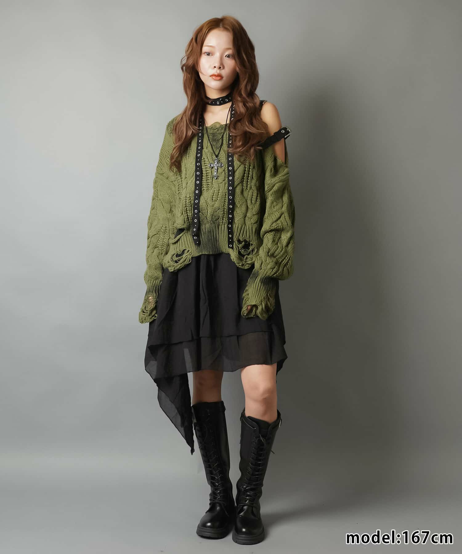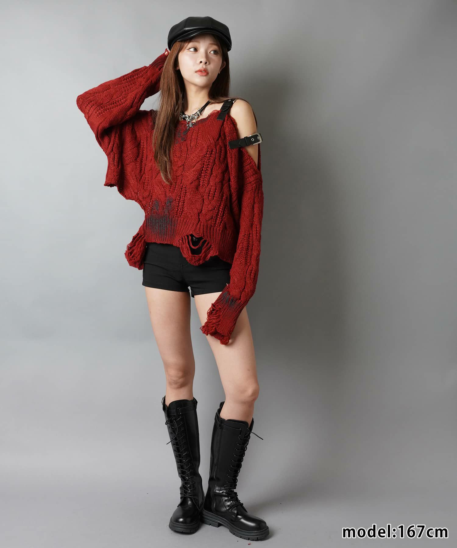 【ダメージデザイン+ワンショルでちょっぴり肌見せヘルシーに?】