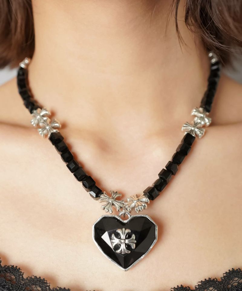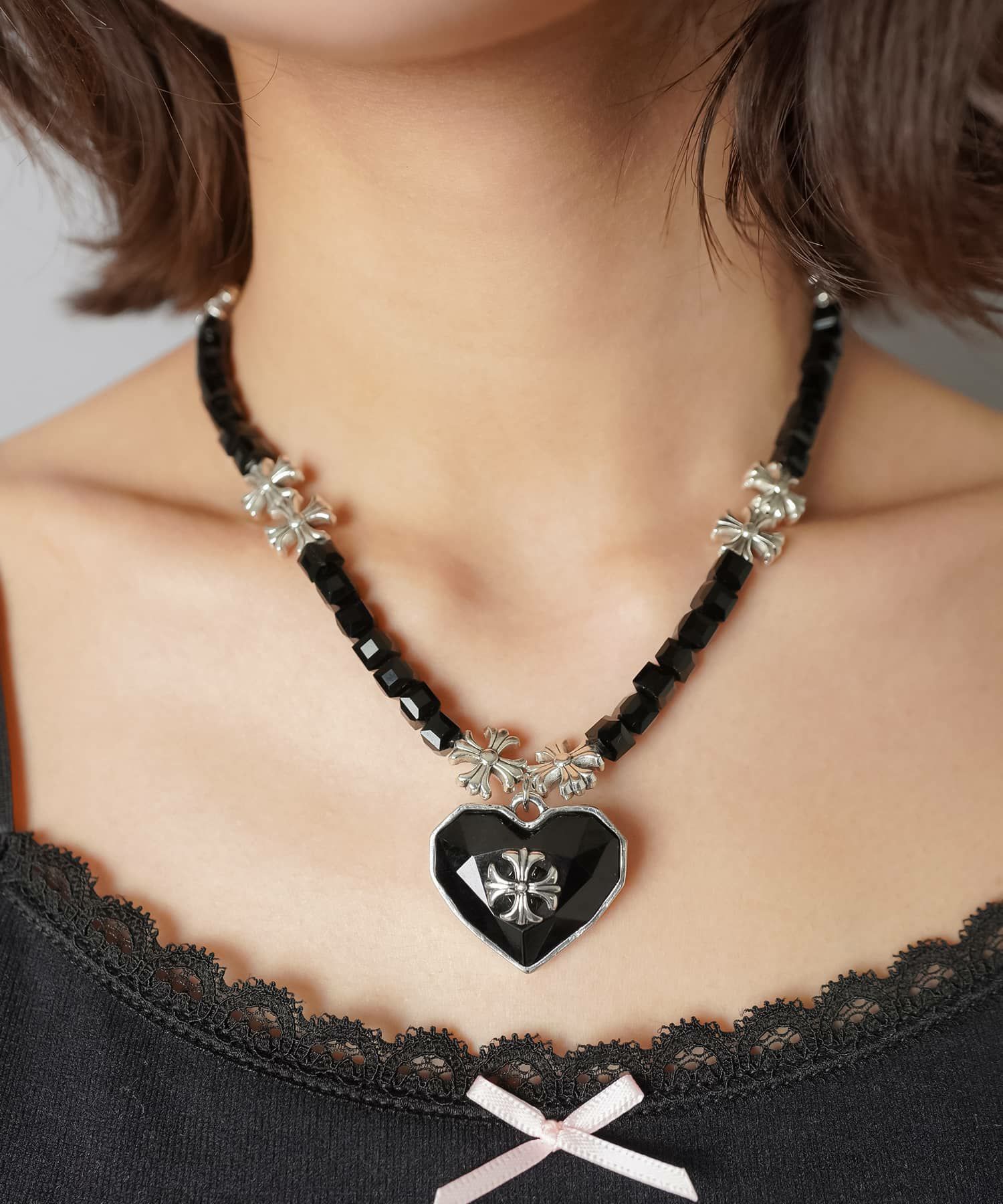 【34%OFF】ビーズネックレス/ハートクロスパーツ<メール便対応>