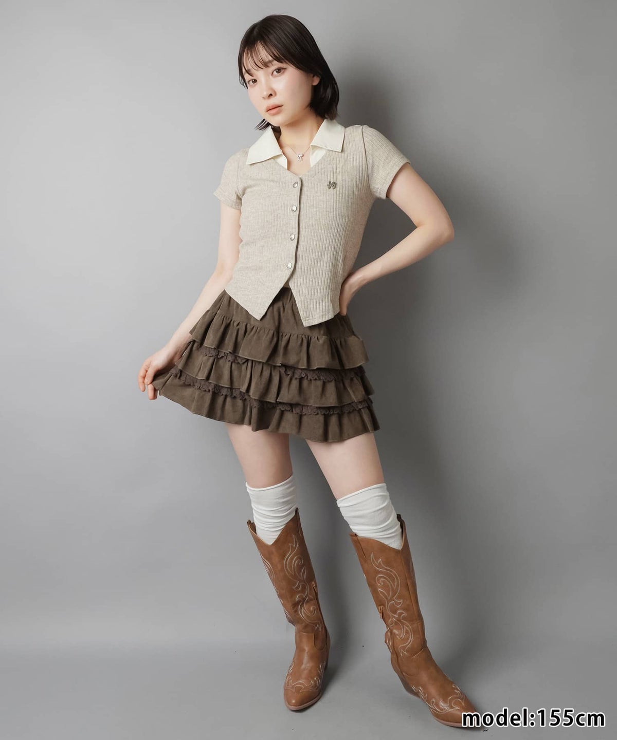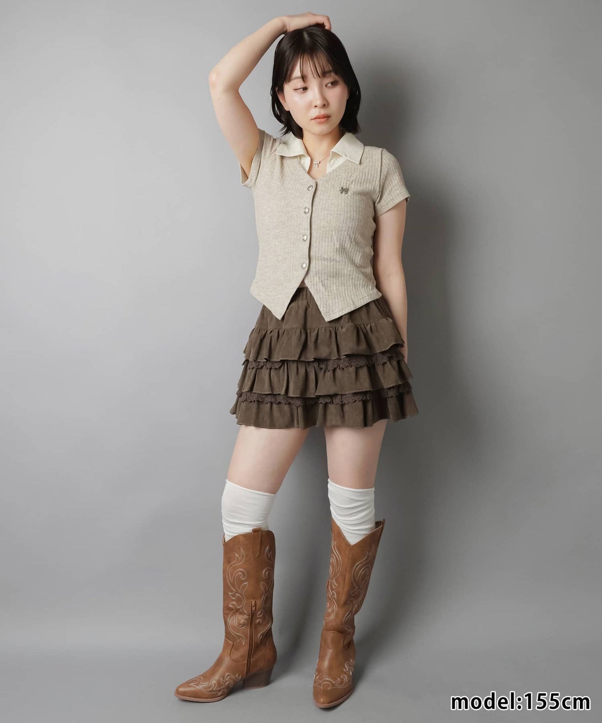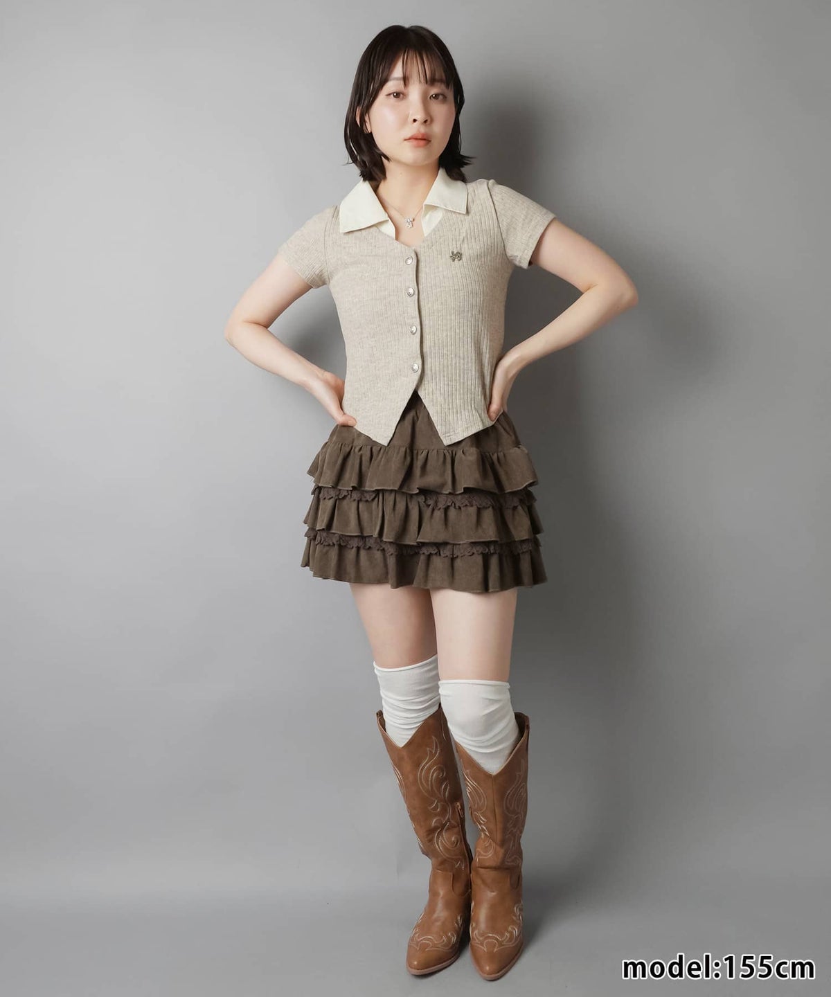 を合わせたスクールガール風の着こなしがGOOD◎