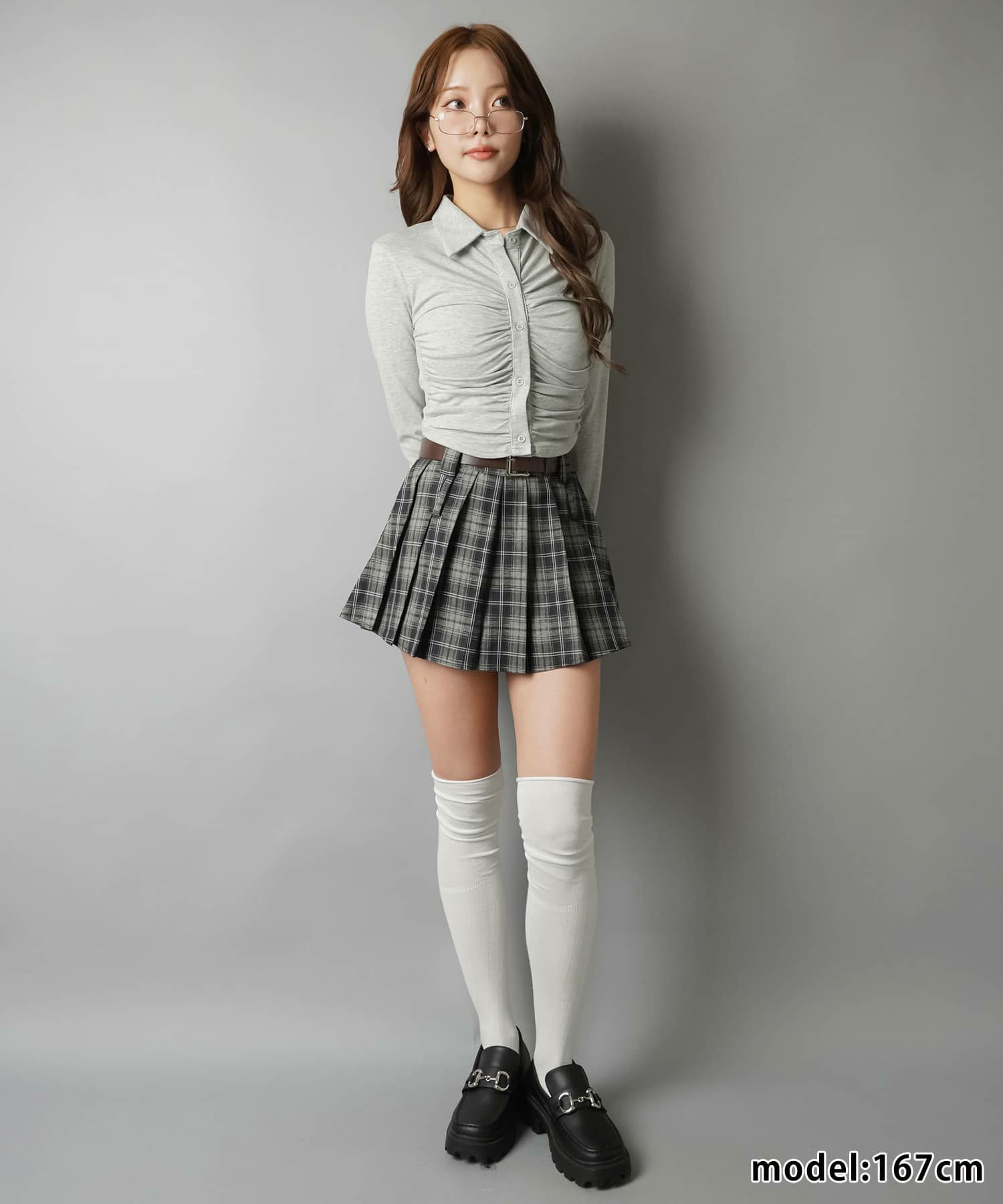 フェミニンでガーリーなコーデを意識した大人っぽさがポイント。