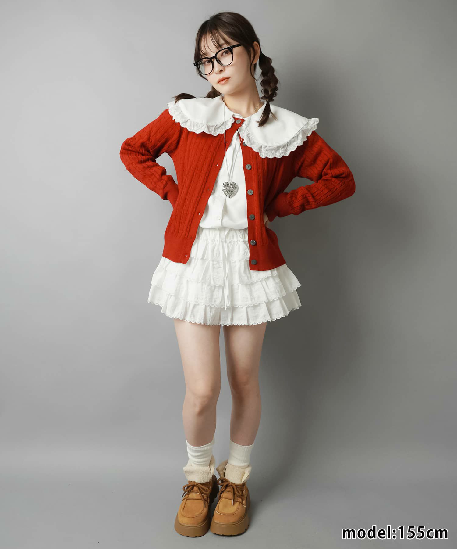 女の子らしさをベースに、カジュアルさを取り入れたスタイル。