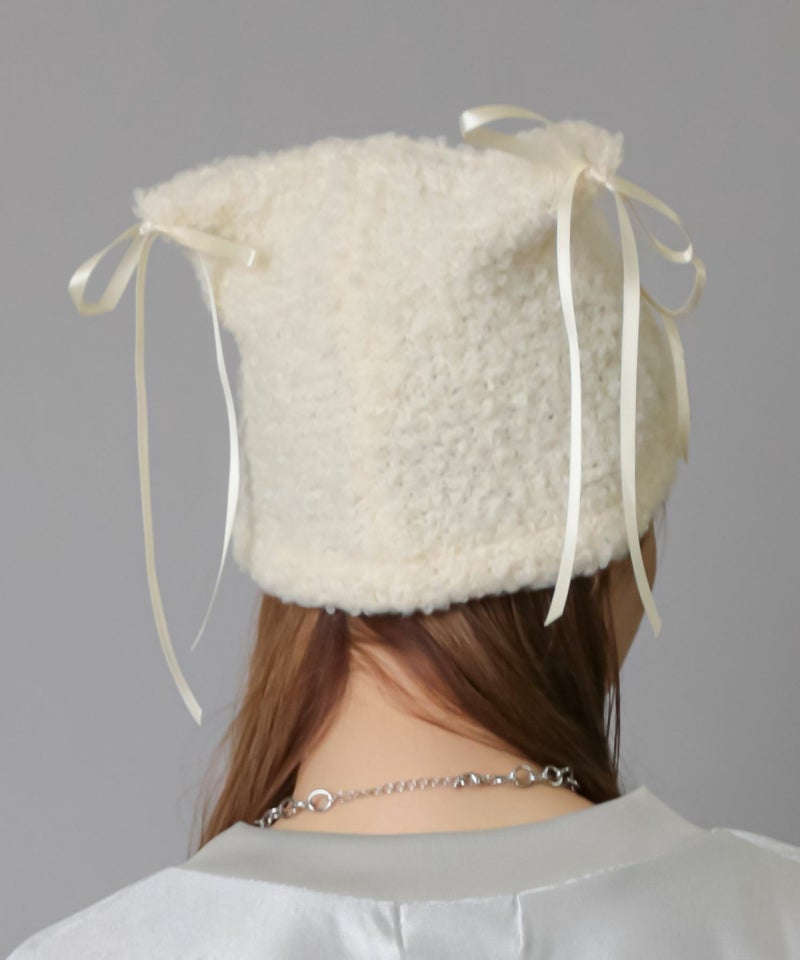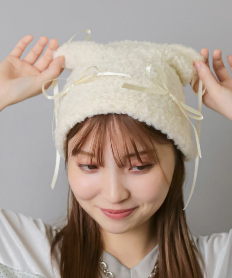 【97%OFF】#バレエコア/猫耳ニット帽/リボン<メール便対応>