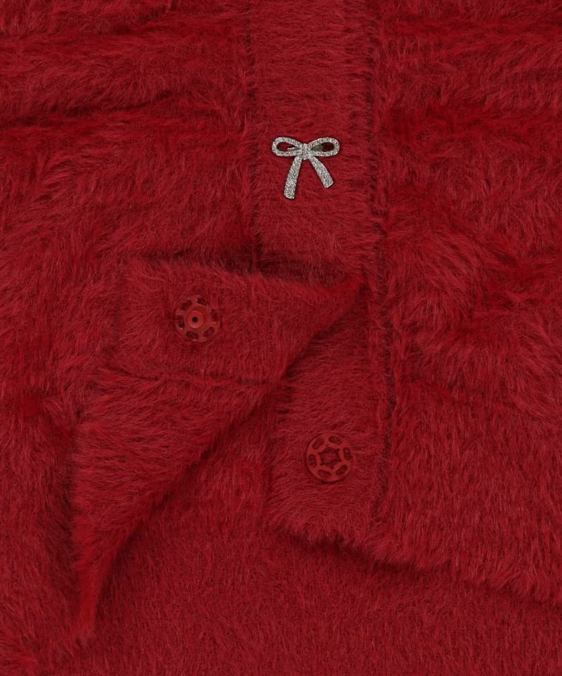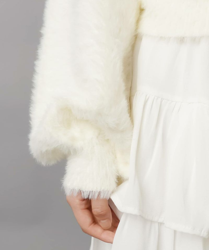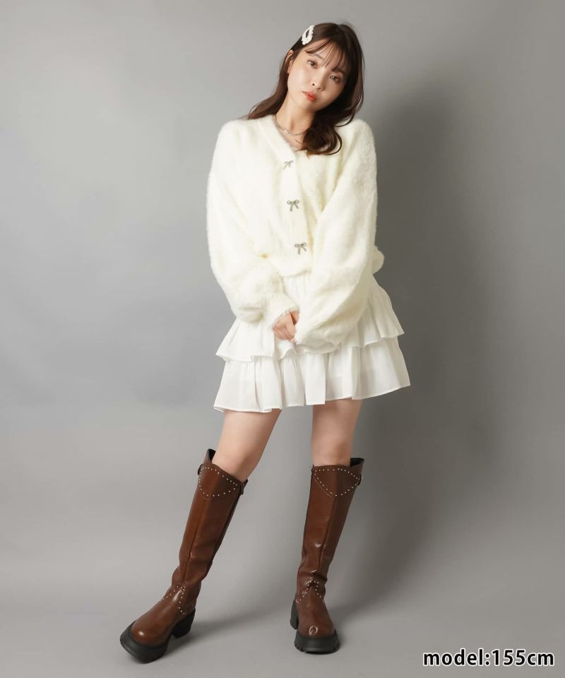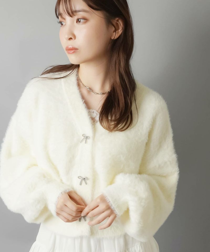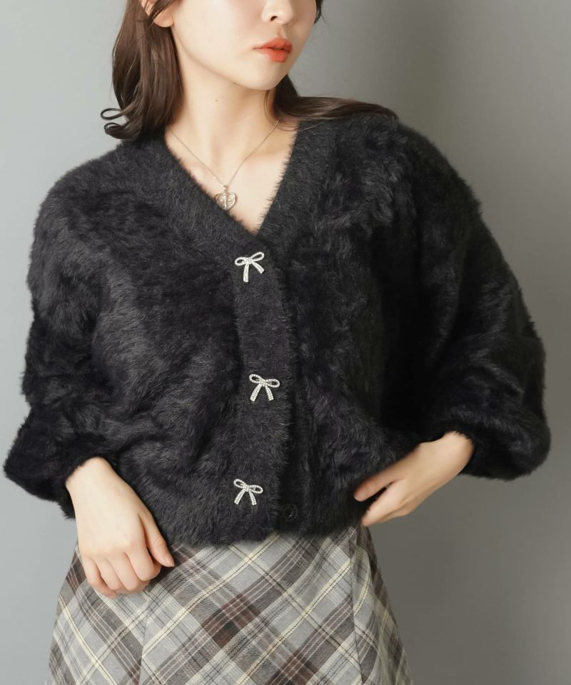 【リボンボタンが可愛い?ふわふわシャギーカーディガン】