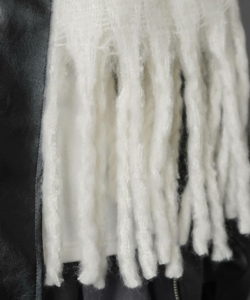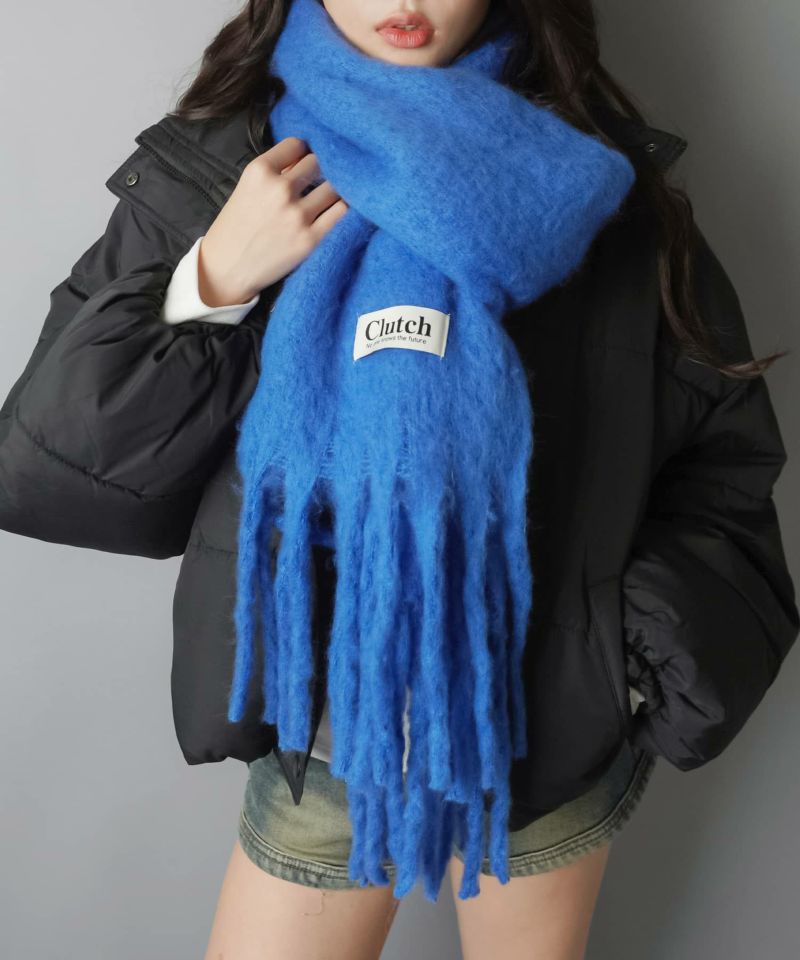 ふんわりとした起毛感が魅力の大判ボリュームマフラー。