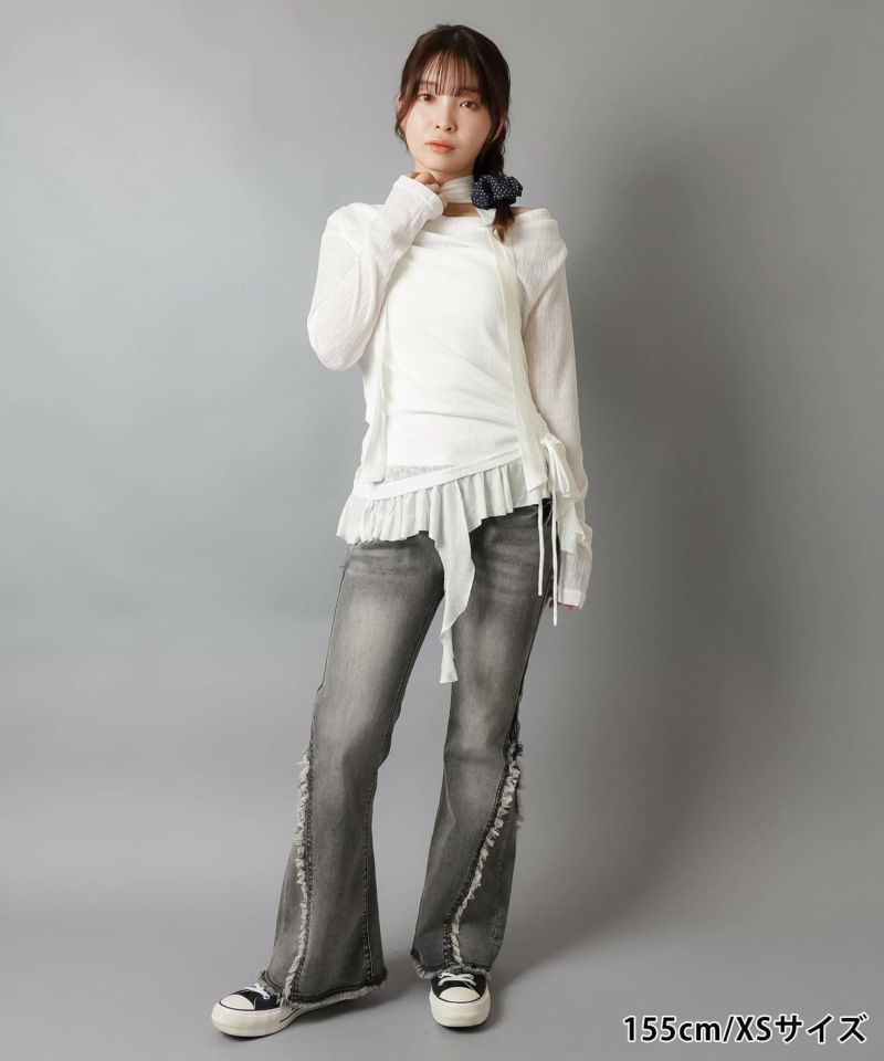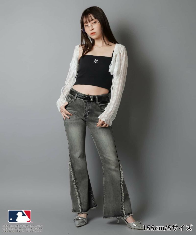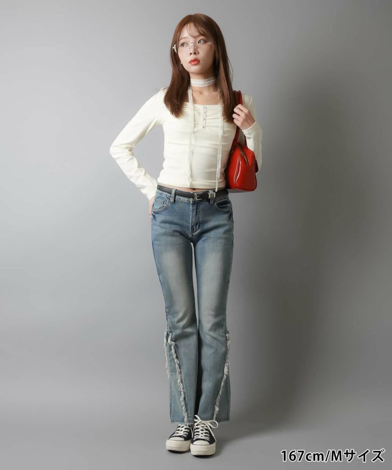 【履くだけで旬なコーデが完成!脚長効果◎トレンドのフリンジデニムパンツ】