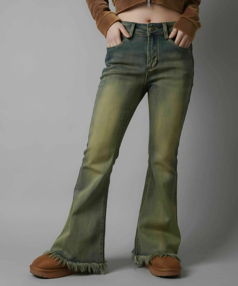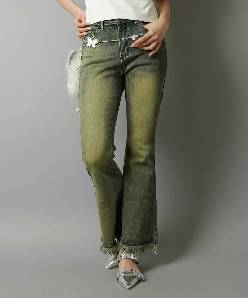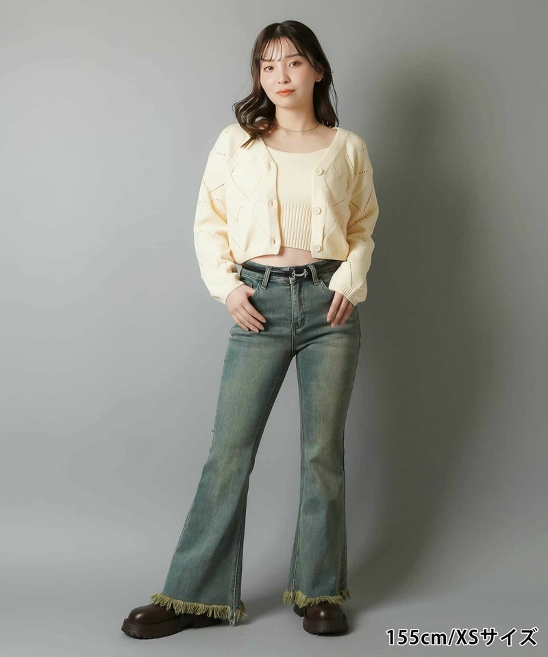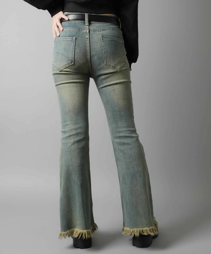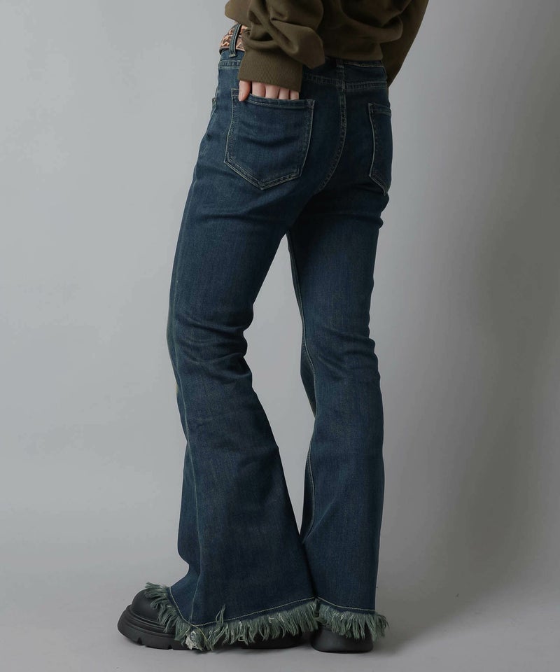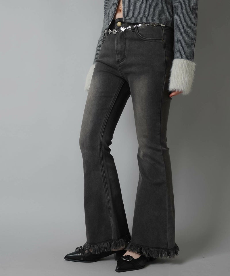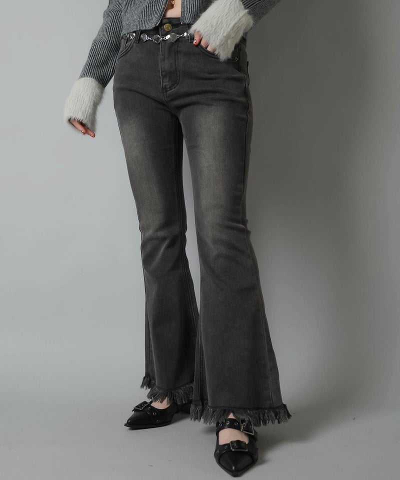 デニムフレアパンツ/フリンジ/3サイズ展開