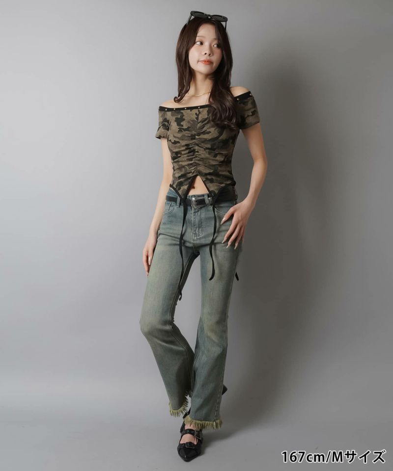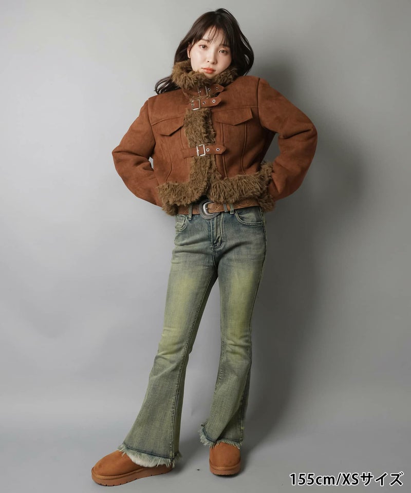 【履くだけで旬なコーデが完成!脚長効果◎フリンジフレアデニムパンツ】