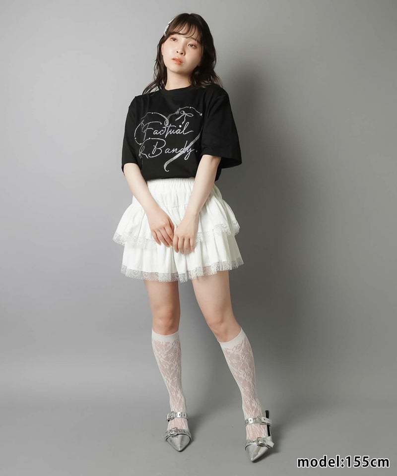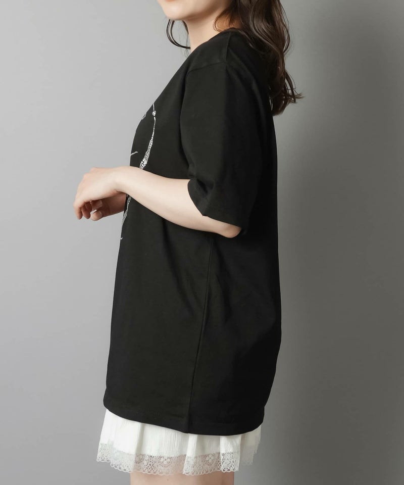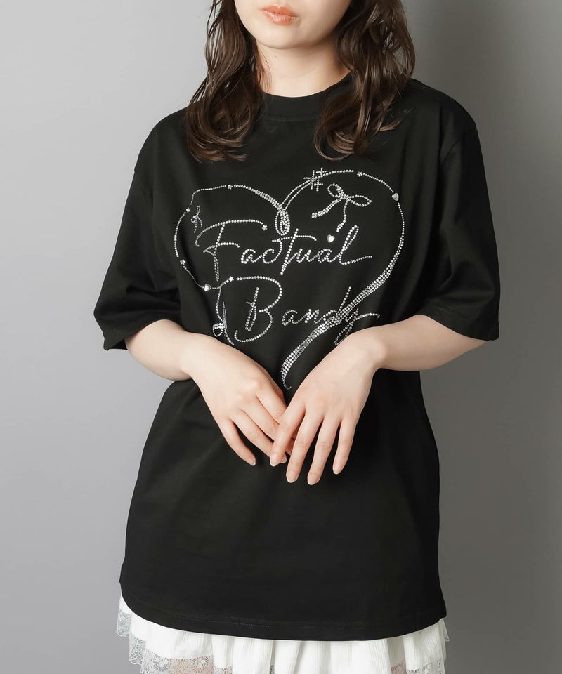 【84%OFF】半袖オーバーサイズTシャツ/ラインストーンハート
