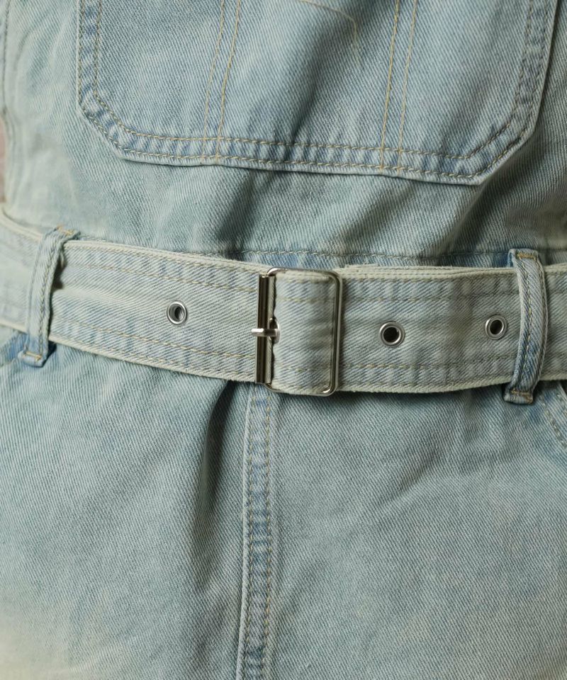 【88%OFF】デニムジャンパースカート/ジャンスカ/ウエストベルト