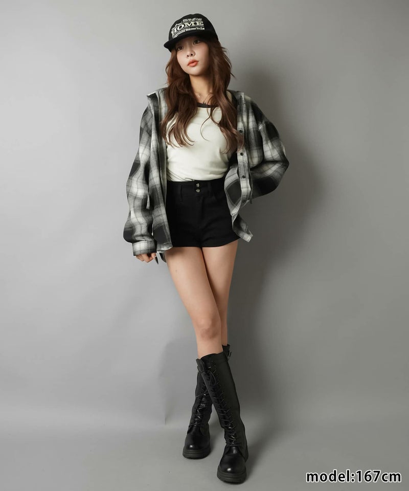 1:カジュアルに着れるハイウエストショートパンツ