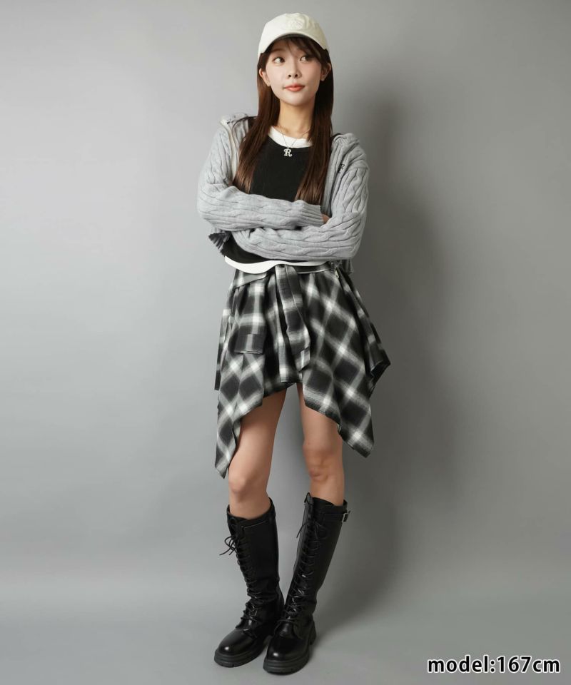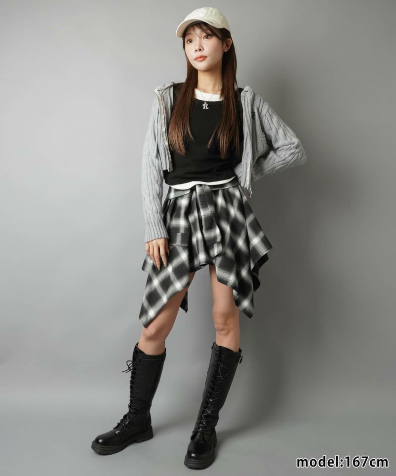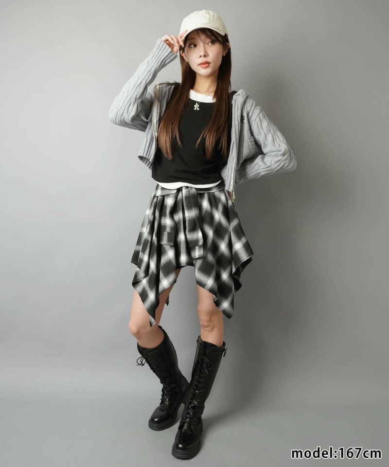 カーブした裾ラインがレイヤード感を演出し、こなれた雰囲気に。