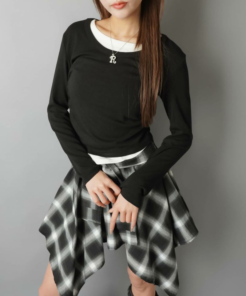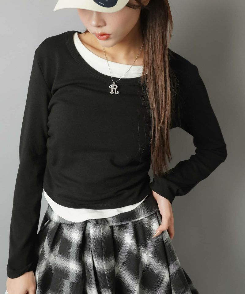 【重ね着いらずで即こなれ♡シンプル可愛いレイヤード風トップス】